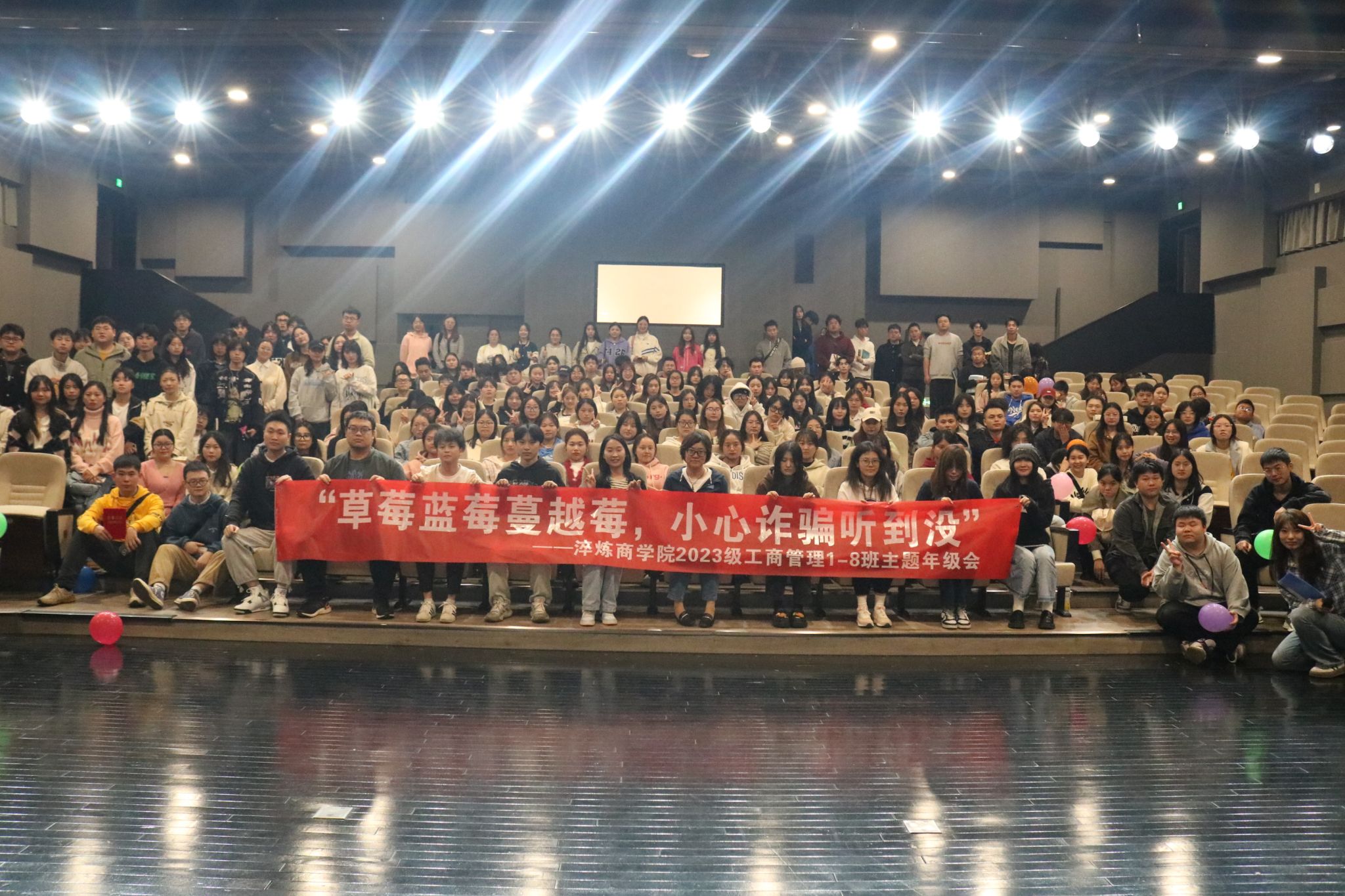 为贯彻落实重庆移通学院 “拒赌反诈校园行”主题宣传月活动要求,切实提升当代大学生的反诈意识,淬炼商学院2023级工商管理专升本1-8班于2023年10月19日下午16:00在六度空间黑匣子剧场召开反诈主题年级会,出席本次年级会的有淬炼商学院副院长曾璐,辅导员汤曲以及2023级工商管理(专升本)1-8班全体同学。
