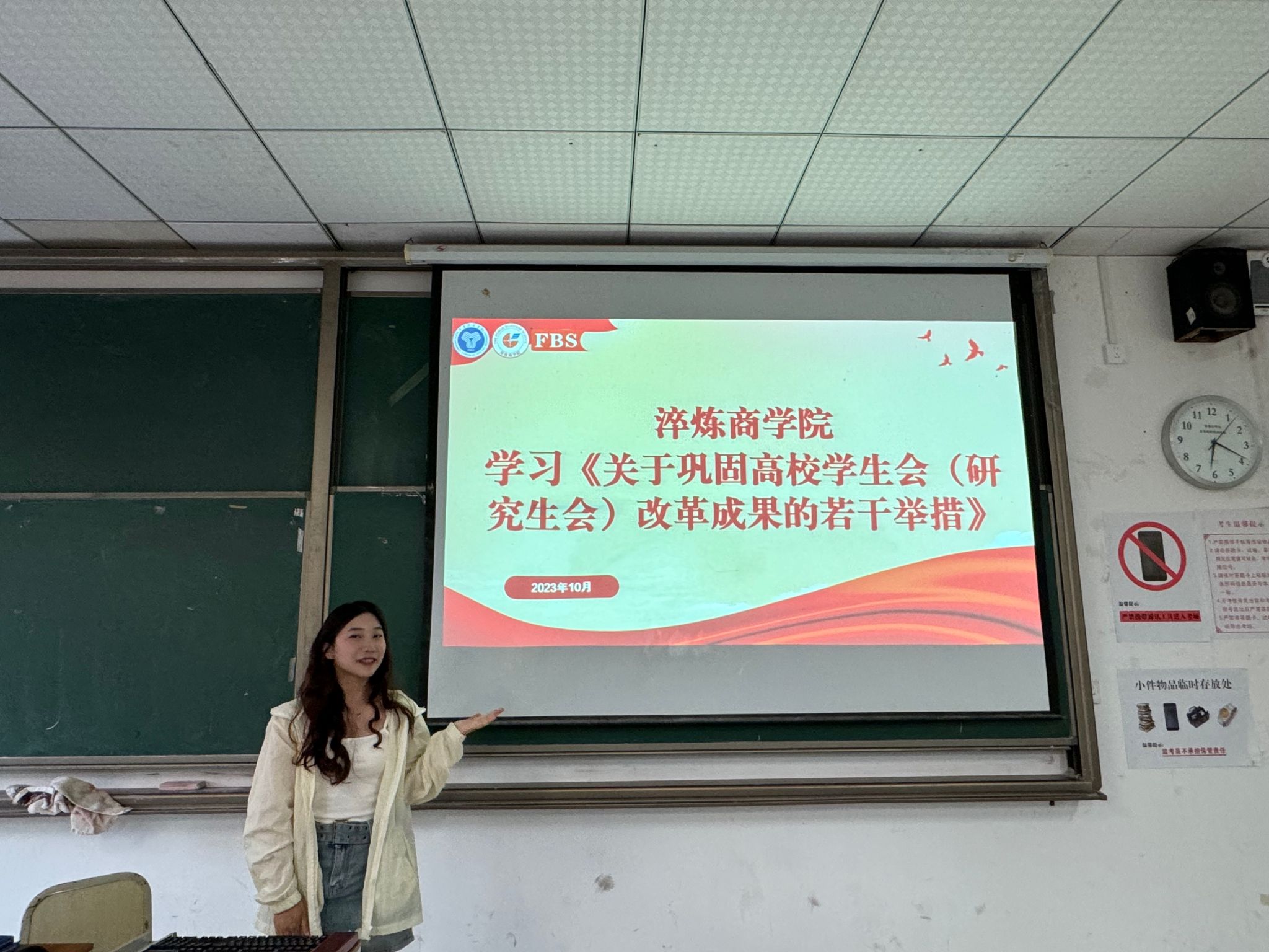 为深入学习贯彻《关于巩固高校学生会(研究生会)改革成果的若干措施》与重庆移通学院学生会章程,深入贯彻党的二十大精神,落实学习习近平总书记关于青年工作的重要思想,进一步深化新时代高校学生会改革和建设,不断提升同学满意度、大局贡献度和社会认可度。进一步推动学生会改革实效,做好团学骨干教育培训工作,做到院系学生会工作人员培训100%覆盖,淬炼商学院组织学生骨干于2023年10月22日在第五教学楼5105对此文件进行了学习。