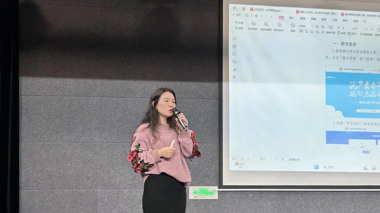 洞悉新趋势,书写新篇章。辅导员杨伦芳老师借以职业生涯规划大赛为契机让同学们认识到职业规划的发展新趋势,辅导员杨伦芳老师为同学们耐心讲解职业生涯规划大赛的流程及比赛规则。同时,杨伦芳老师希望同学们把握有限的时间积极参与就业创业等各类赛事以提高自身竞争实力,不断丰富自己的履历,充分做好职业生涯规划,为以后就业打下坚实的基础。