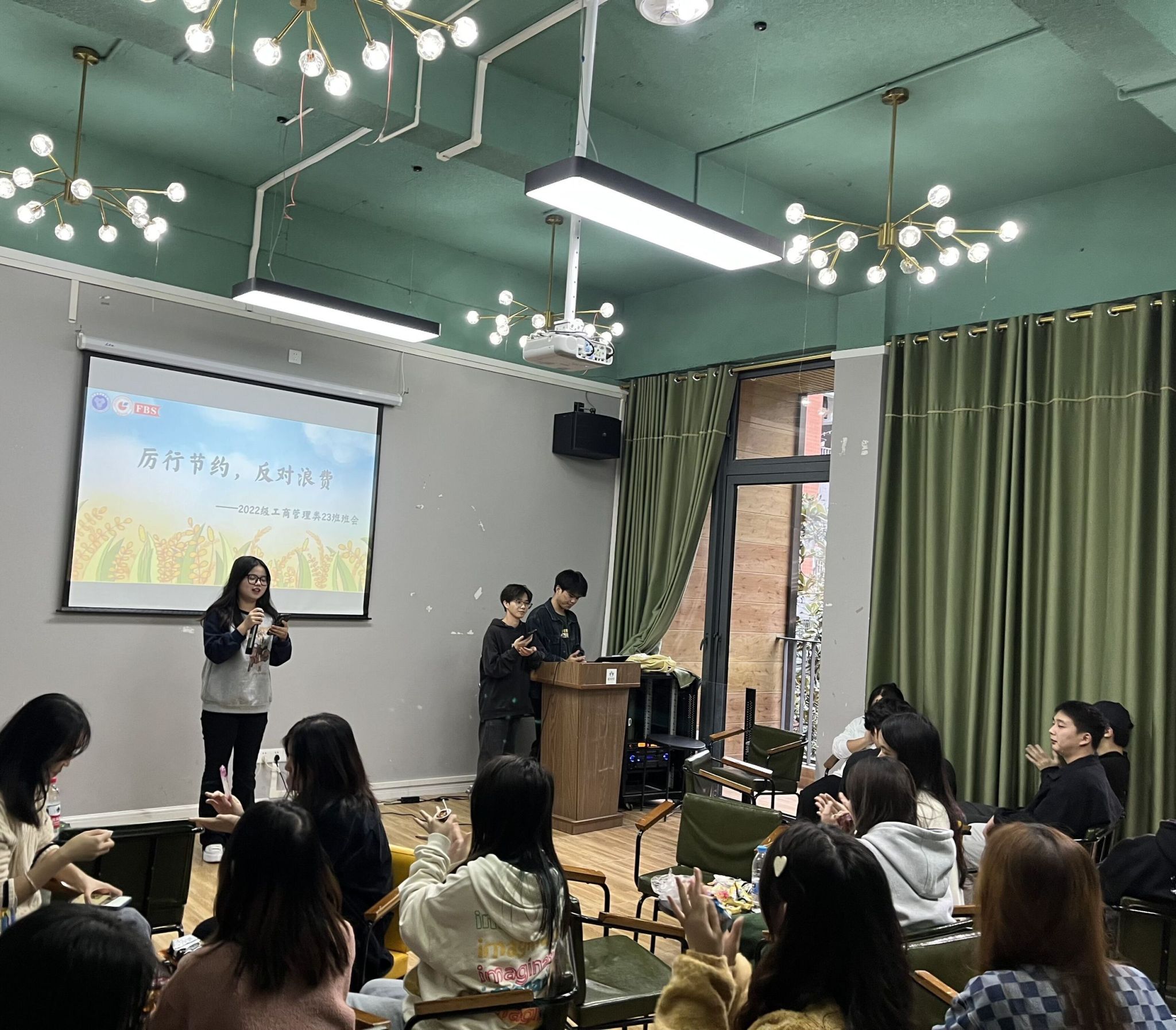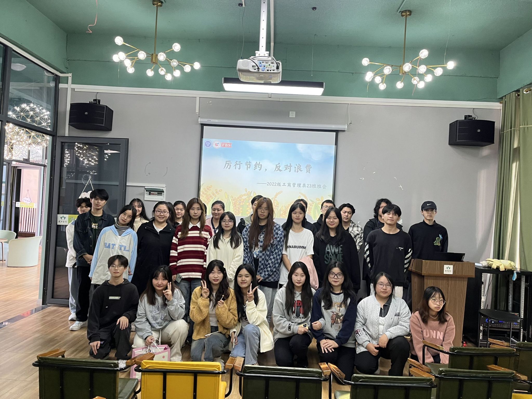 为大力弘扬中华民族勤俭节约的优秀传统,反对铺张浪费,让同学们养成珍惜粮食、厉行节约、反对浪费的行为习惯。同时鼓励班级同学投入到“节约粮食,人人有责”的行动中,2022级工商管理类23班于2023年10月24日星期二下午16:00在花果书院多功能活动室开展“厉行节约,反对浪费”主题班会,辅导员唐银桧老师和异科导师刘月老师应邀到场,2022级工商管理类23班全体同学共同参与。
