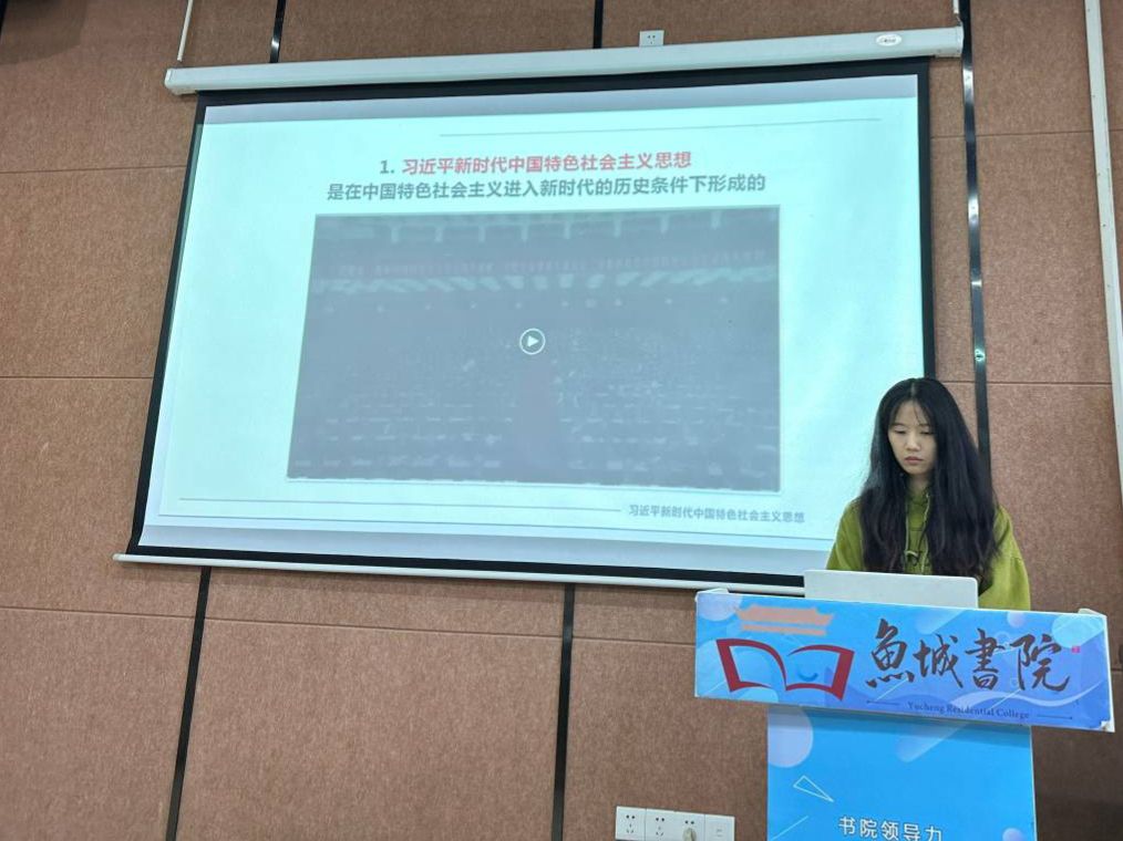 接下来是由团支书进行发言,团支书介绍了习近平新时代中国特色社会主义思想,强调了用党的创新理论统一思想、统一意志、统一行动,弘扬伟大建党精神,牢记“三个务必”,推动全党为全面建设社会主义现代化国家、全面推进中华民族伟大复兴而团结奋斗。