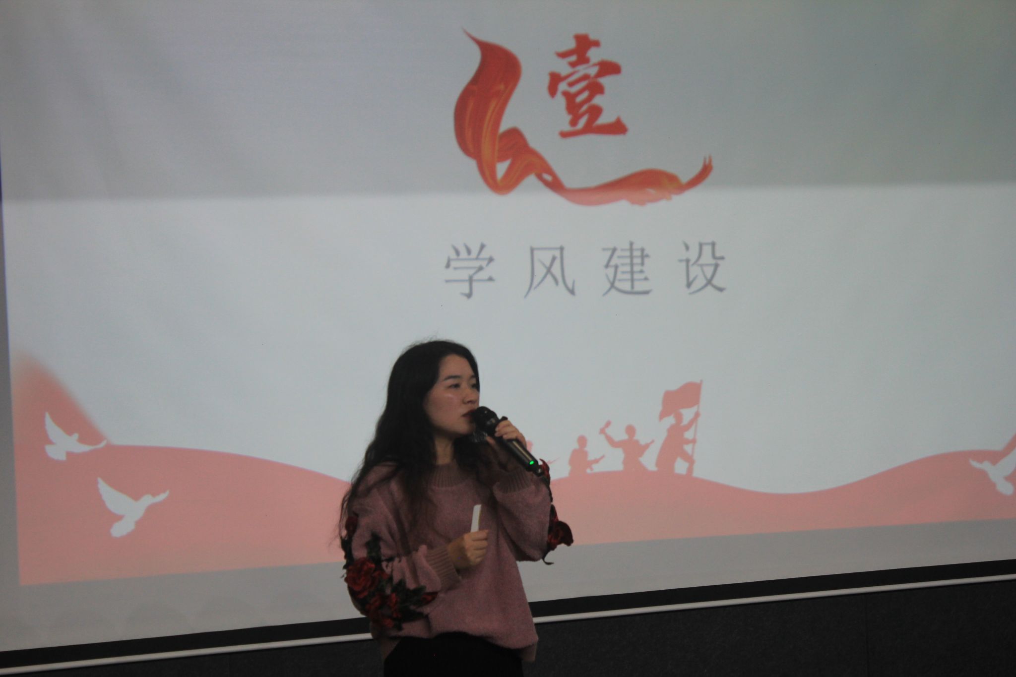 会议开始,辅导员杨伦芳老师指出:“学风的好坏直接影响到学习风气和教学氛围的提高。”为进一步加强学风建设,尽全力为同学们的成长成才营造良好的育人环境,辅导员杨伦芳老师带领同学们一起宣读日常行为规范条例,增强学生学习的积极性和主动性。为促进学生的健康成长和综合素质的全面提高,辅导员杨伦芳老师仔细解读违规违纪相关文件,进一步推动良好学风的建设,同学们将辅导员所言所述铭记在心。