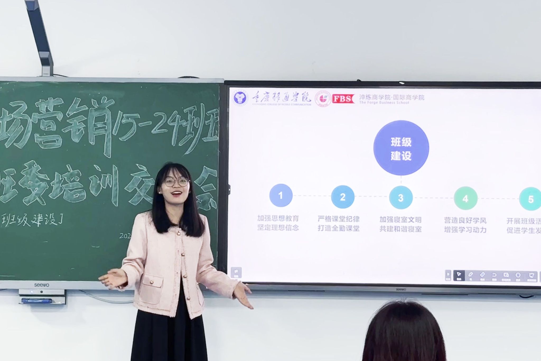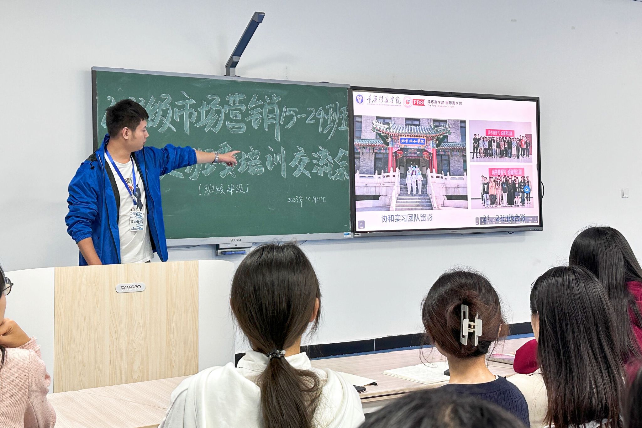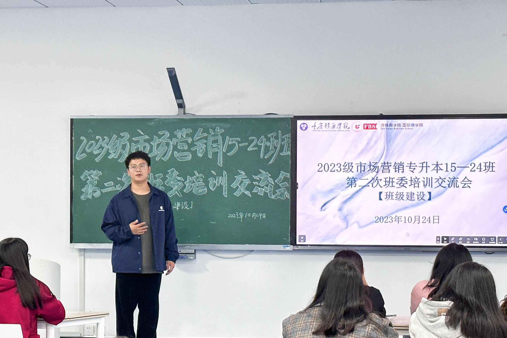 为进一步加强班级建设,促进良好班风学风,增强集体的凝聚力、向心力,提升班委在班级建设管理当中的重要作用。淬炼商学院市场营销专升本15-24班于2023年10月24日晚19:00在第五教学楼202教室开展了“披星戴月莫停留·奋发踔厉齐奋进”主题班委会。此次活动由年级长李金鑫主持,辅导员韩舒臣老师及全体班委共同参与。