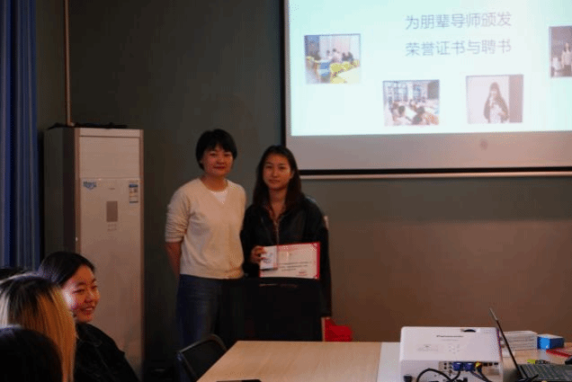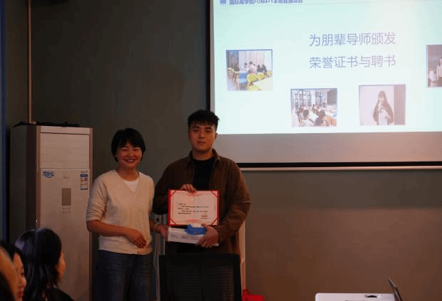 在李魁梅副院长讲解后,进行了朋辈导师的聘书与荣誉证书发放,李院长代表学院进行相关聘任宣读,经研究决定,聘任王梦强同学为国际商学院2023-2024学年朋辈导师,并且对上一学年担任朋辈导师的蒋越同学进行了表彰。现场的老师与同学们对两位同学的聘任表示了热烈的祝贺。
