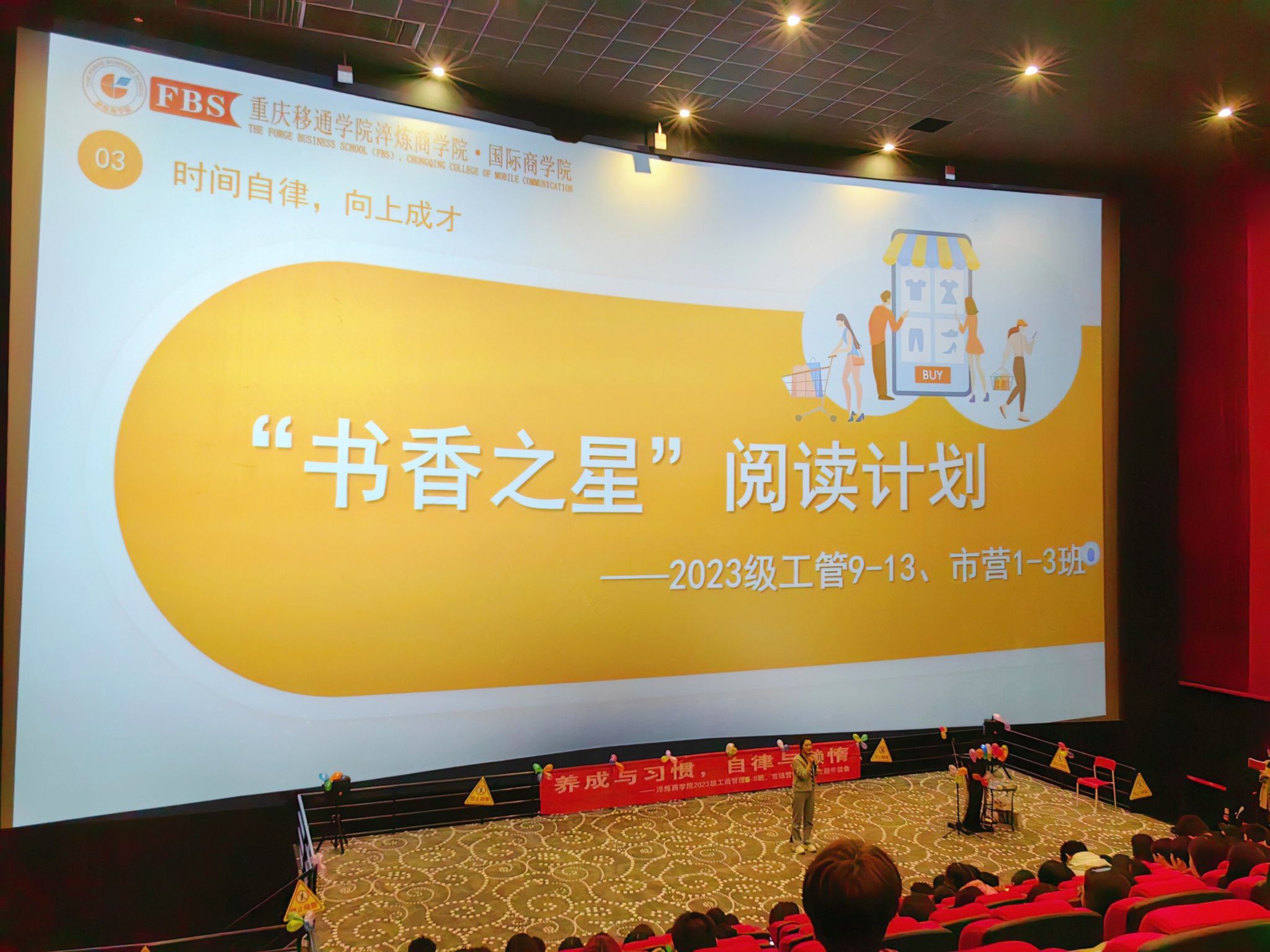 淬炼商学院2023级工商管理专升本9-13班、市场营销专升本1-3班全体学生,于2023年10月25日晚上18:00在万画影城教学厅(X超幕影厅)开展了“书香校园”阅读计划宣讲会。周瑜老师强调,此次活动可以提升学生的阅读兴趣、培养阅读能力和思维品质,进而促进良好学风校风的形成,打造具有书香氛围的校园环境,并要求各班积极规划和组织一系列持续性和短期特色的阅读活动,为同学们提供丰富的阅读资源、导师指导和激励机制,提高学生参与度和阅读享受感。