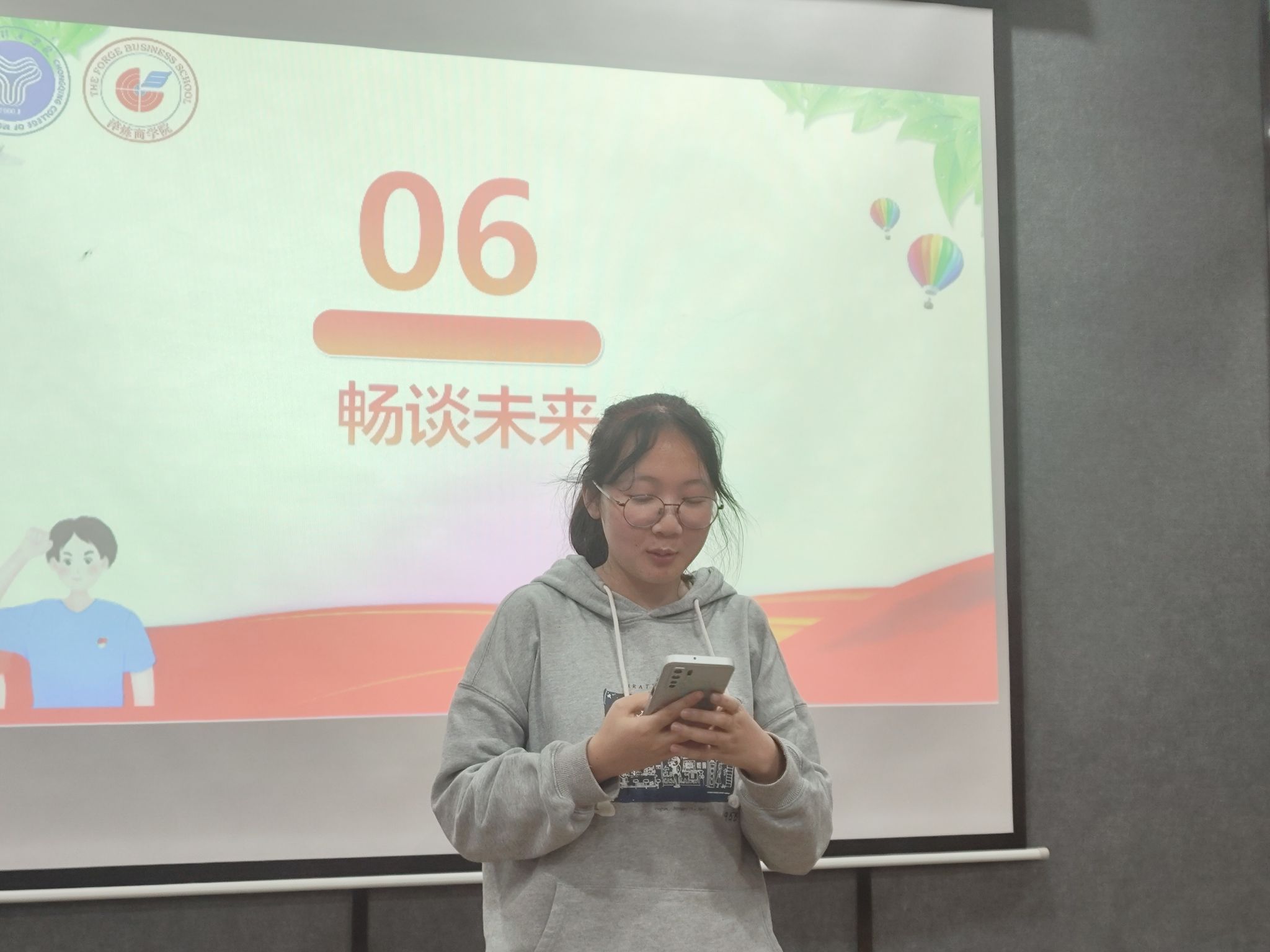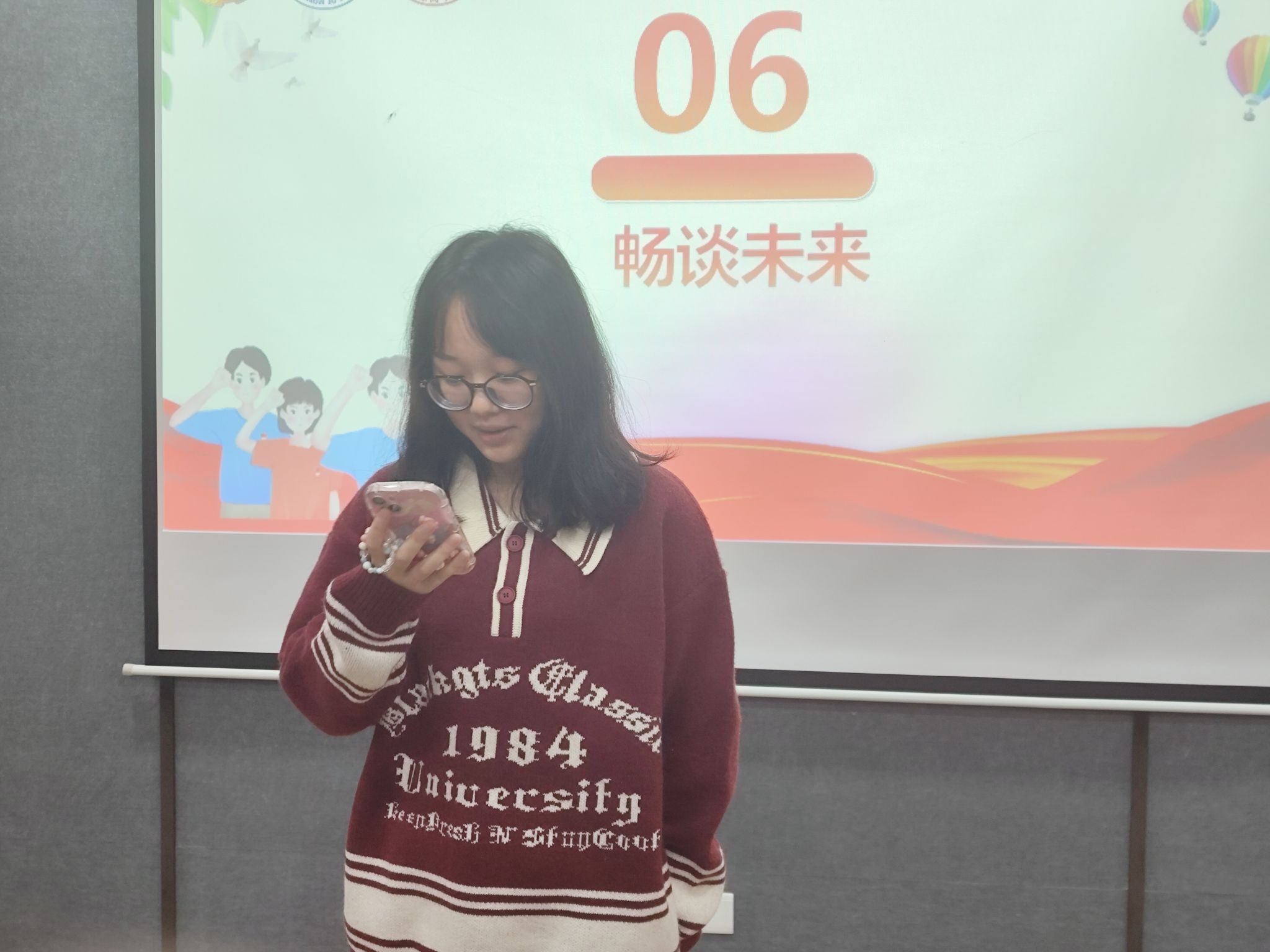 “未来是青年的画布,他们用激情和梦想书写着未来的篇章”。在团会的最后环节,班长杨明洁和学习委员姜珊分别上台分享了自己的感悟和未来规划。她们强调,人生的航程需要以积极的态度面对挑战,用思想的力量引导行动。作为新时代青年,要坚持不断的学习、探索和实践,提升自身的综合素质和能力水平,以期望能以青春之我,奋斗之我,为民族复兴铺路架桥,为祖国建设添砖加瓦,这不仅是两位同学的期望,也是市场营销15班全体成员的共同追求。