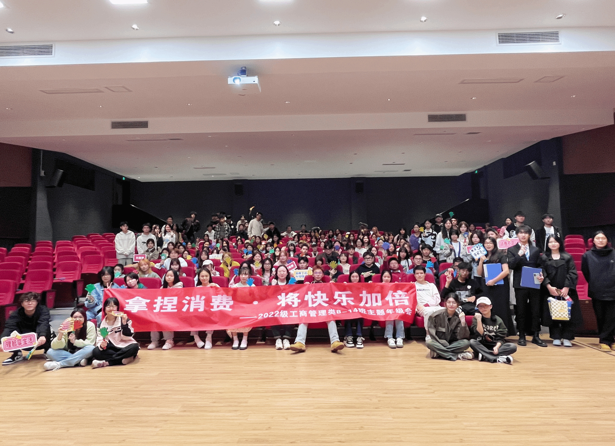 如今,大学生群体正以独具个性的消费选择刺激着新业态、新消费模式的产生和发展。在“双十一”来临之际,各种促销信息良莠不齐,暗藏众多“陷阱”,为引导同学们树立正确的消费观念,形成良好的消费习惯,2022级工商管理类8-14班于2023年10月25日在六度空间105°学术报告厅开展“拿捏消费,将快乐加倍”主题年级会。