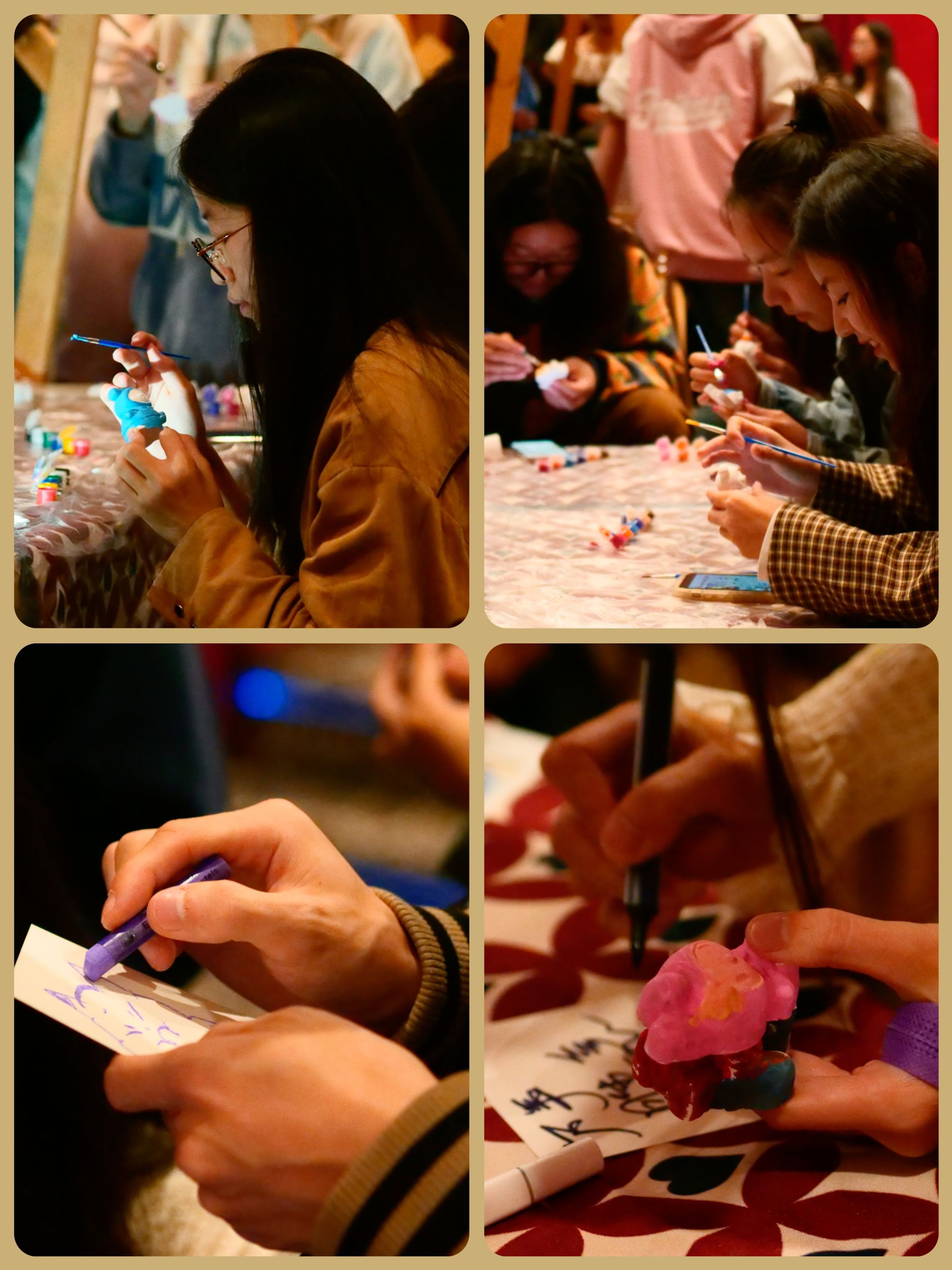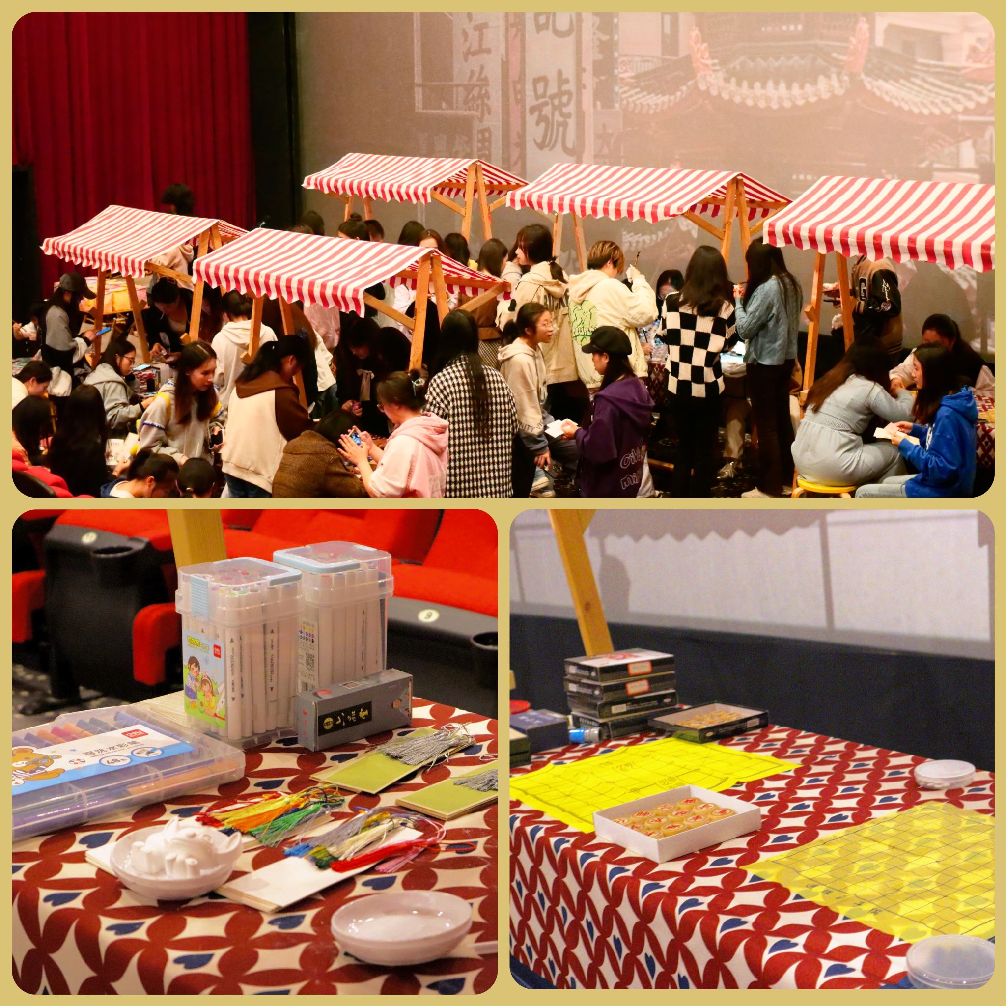 畅游怀旧集市,同学们展现出独特的创造力和团队协作精神,制作中体验到创造魅力。制作书签,大家将各式纸贴纸、丝带、毛笔等材料发挥创意,成品独具特色。设计石膏娃娃,色彩的碰撞赏心悦目,创意无限。绘制环保袋,充满艺术气息的形状和插画“跃然袋上”。棋艺对决,全神贯注,沉浸体验。传统集市的热闹唤起对民俗文化的认可,积分抽奖的参与使得身心得到放松。