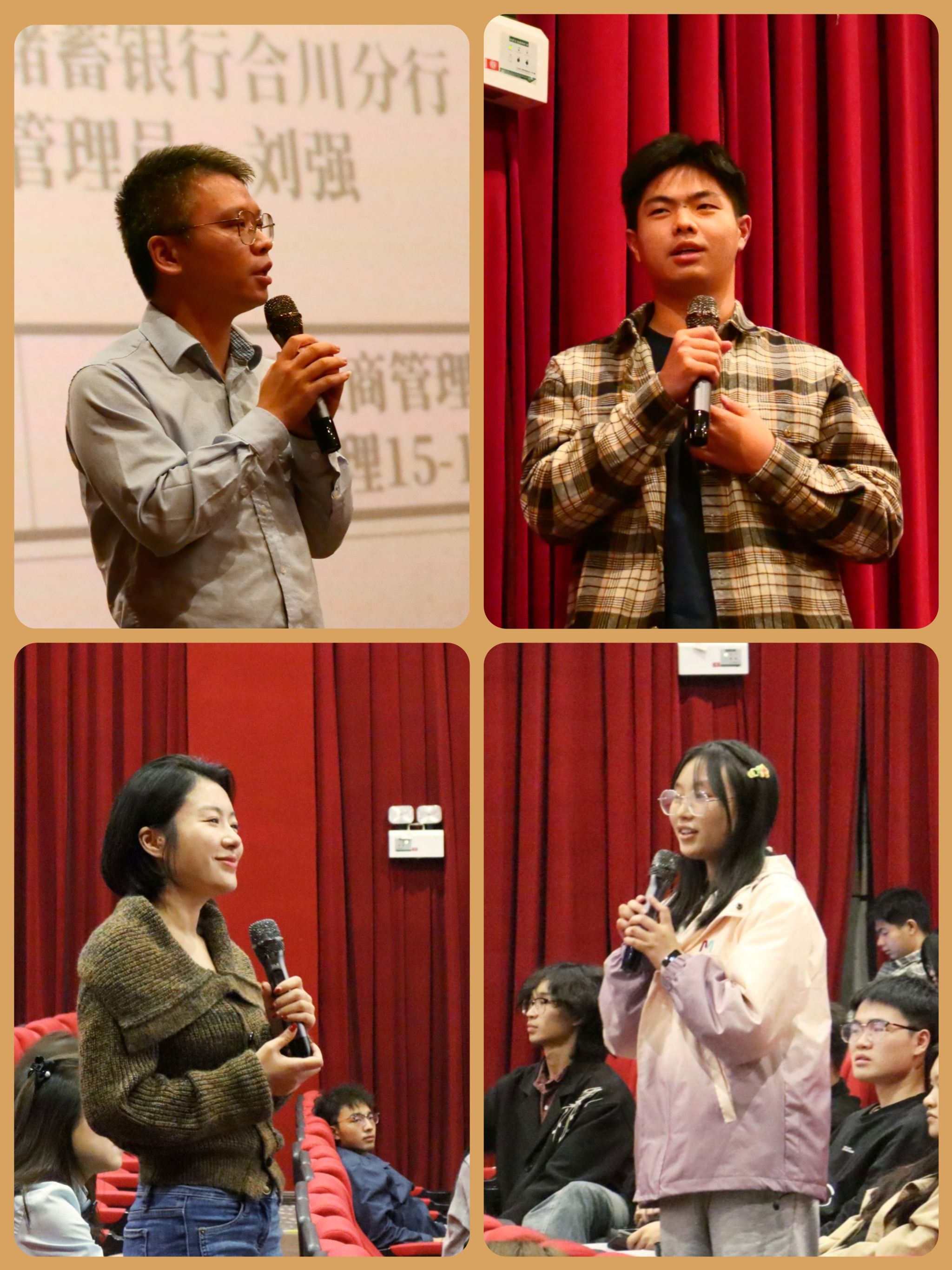 现场互动,答疑解惑。同学们结合自身经历,纷纷提问。刘老师就银行职业适合性、实操实习必要性、职业面试严谨性等问题做出详细解答。帮助同学们全面了解自己,准确评估自身特点与强项,在竞争中发挥个人优势,实现自我价值。
