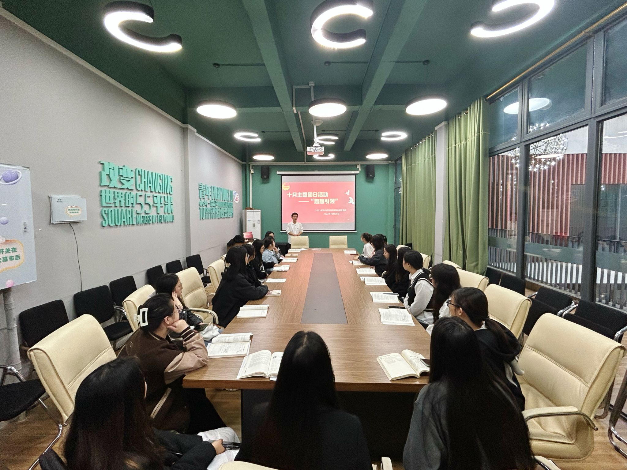 为深入学习贯彻党的二十大精神,坚持不懈用习近平新时代中国特色社会主义思想凝心铸魂,提升团支部组织力、凝聚力。淬炼商学院2023级市场营销两年制06团支部于2023年10月27日下午15时在花果书院大型会议室开展“思想旗帜”特别主题团日活动,活动由团支书袁书舟主持,全体支部成员参与此次团日活动。