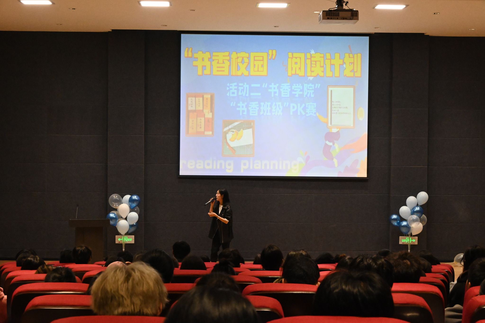 为进一步激发学生读书求知的热情、培养学生良好阅读习惯,丰富校园文化生活。会议第四节,主持人姚艺博针对“书香校园”阅读计划的活动内容进行详细介绍,通过图书馆系列阅读活动、大咖传记阅读活动、“书香之星”阅读挑战赛、“书香学院”“书香班级”PK赛等活动集中整合阅读资源,同学们积极思考,推出逐步举办“书香团支部”“最美阅读之星”“最美读书笔记”等评比活动,举行“读行知书走行知路”主题演讲比赛、“经典重读 青春当燃”主题征文比赛等,促进每位同学养成良好的阅读习惯,引导同学们成长成才,助力学校学风建设。