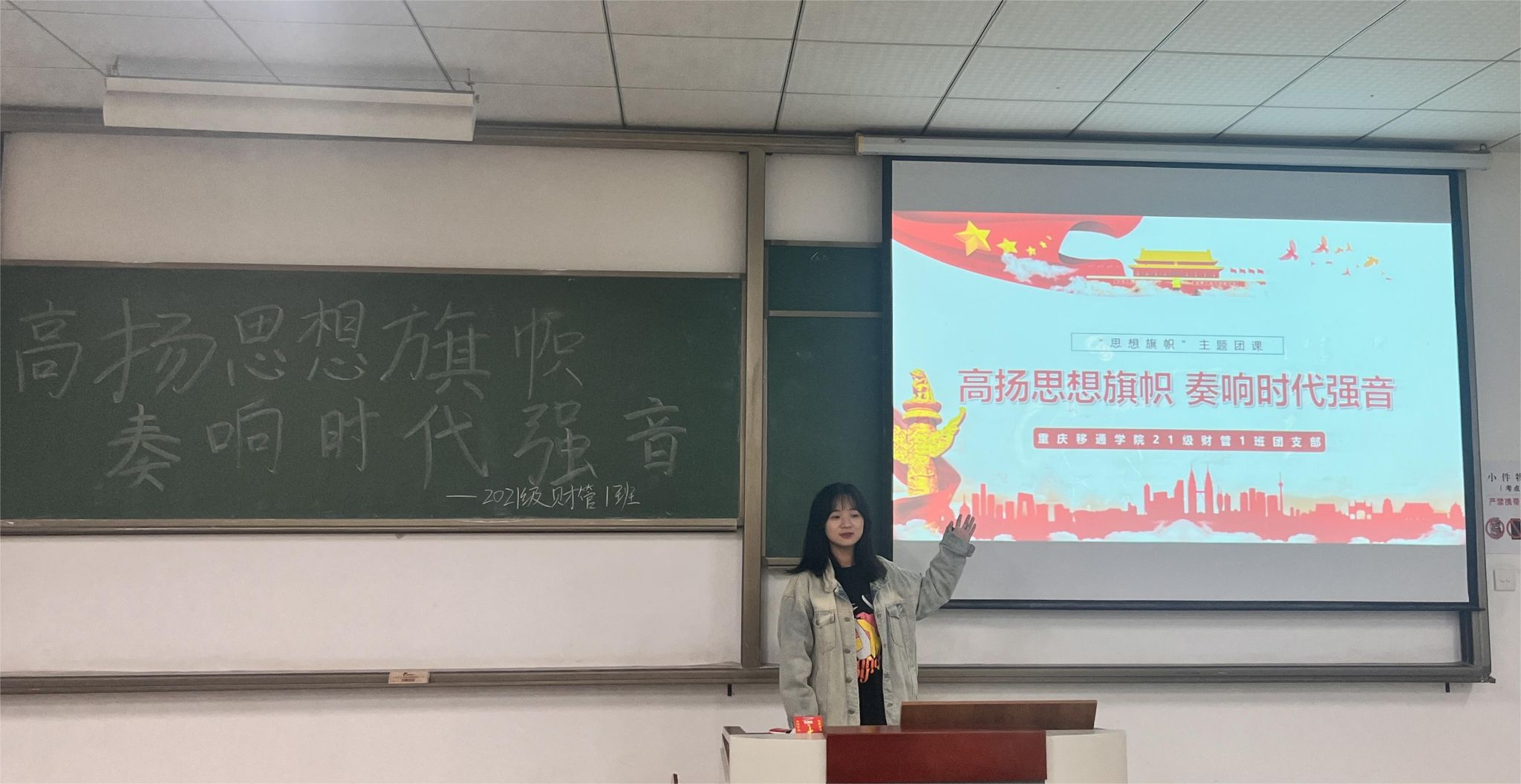 为深入贯彻学习习近平新时代中国特色社会主义思想,10月31日上午,2021级财务管理1班全体成员在团支书的带领下在五教5203开展“高扬思想旗帜·奏响时代强音”主题团日活动。