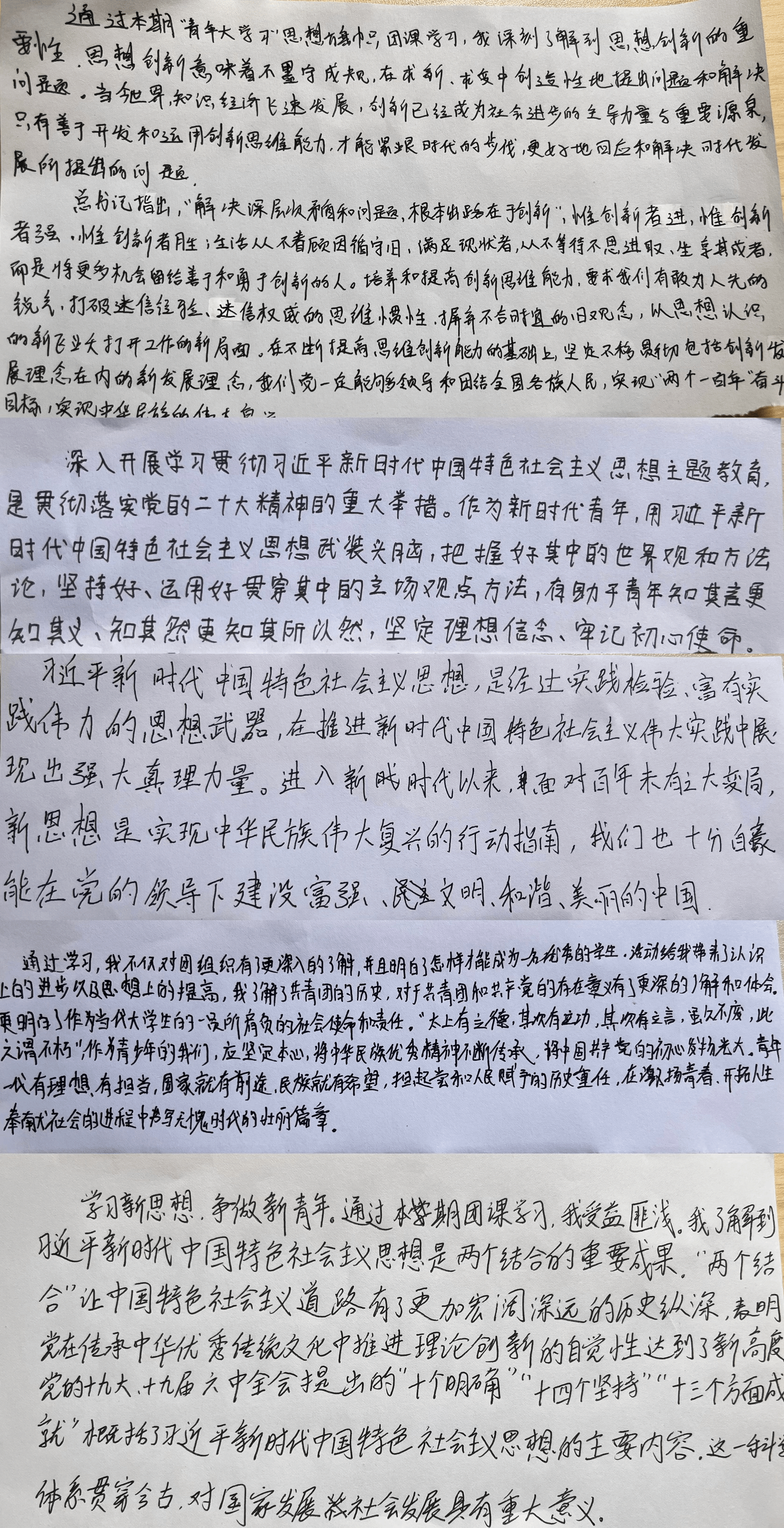 通过全班同学的共同努力,本次习近平新时代中国特色社会主义思想学习教育活动圆满成功,并取得了良好的效果。同学们也纷纷提笔将自己的团课心得体会记录了下来,通过此次团日活动使团支部每位成员更加深入理解了习近平新时代中国特色社会主义思想,提高理论联系实际的意识,争做新时代好青年!