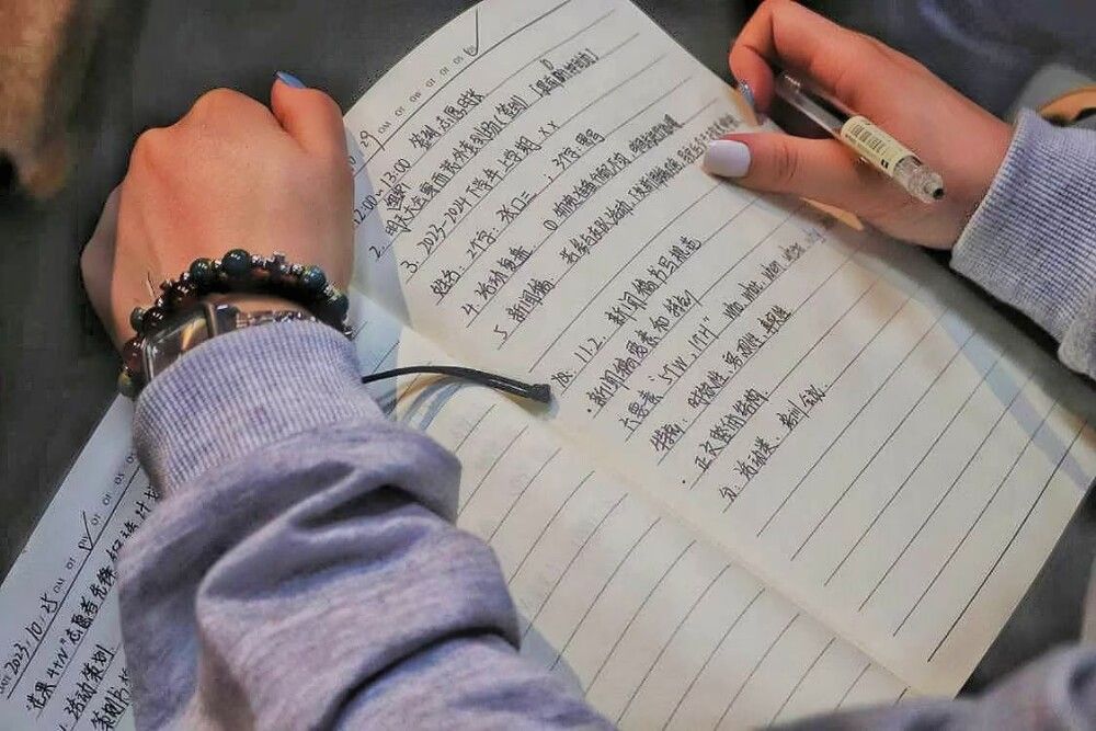“以讲促学、以学促思、以思促干”。叶佳欣同学以新闻稿的要素和特点为切入点,点明主题。一篇好的新闻稿必须有一个好的引入,叶佳欣同学通过一篇乡村实践活动的新闻稿案例,向同学们阐述了新闻稿的开头和结尾应含有六个要素:5个“W”,1个“H”,其中叶佳欣同学提到新闻稿的正文整体结构,开头和结尾都需做到高度概括,凝练总结,突出活动的主题和重点。