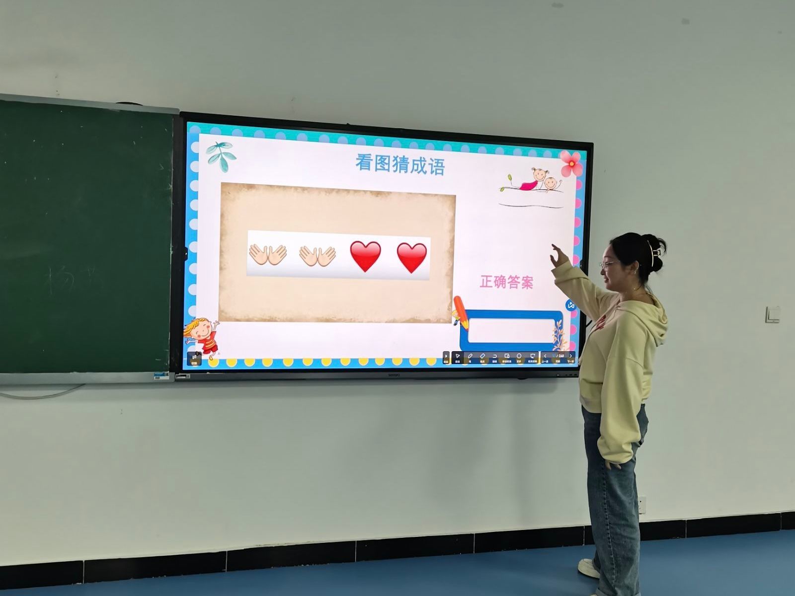 第二个活动是根据Emoji猜成语,限时三分钟,最终按照猜对的个数进行排名,颁发小奖品。图片一出,大家争相头脑风暴,激烈地谈论着,说出自己猜出的答案,在经过谈论,说出大家都认可的答案,有的很容易猜出,大家意见统一,也有难度较高的,需要多加讨论。在这个活动中,有对表情符号的理解和猜测能力的展现,也是对同学们沟通能力的展现,答案众多时,需要小组整合得到一个统一的答案。