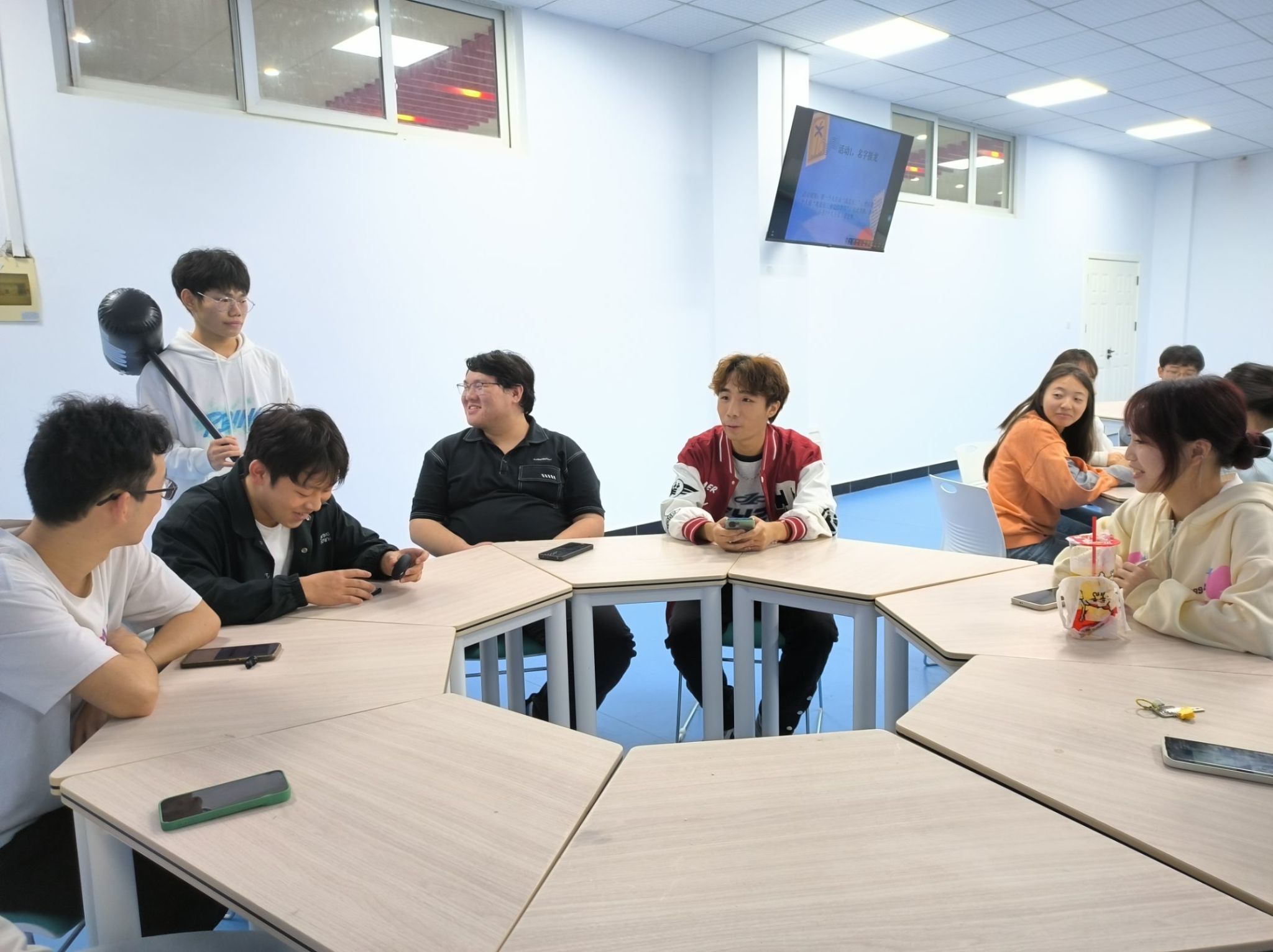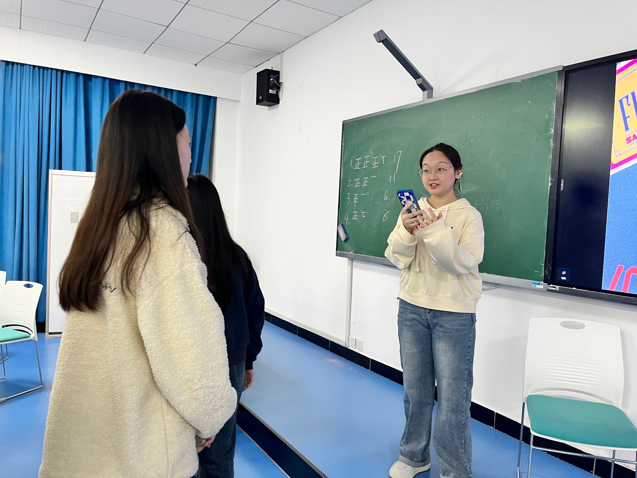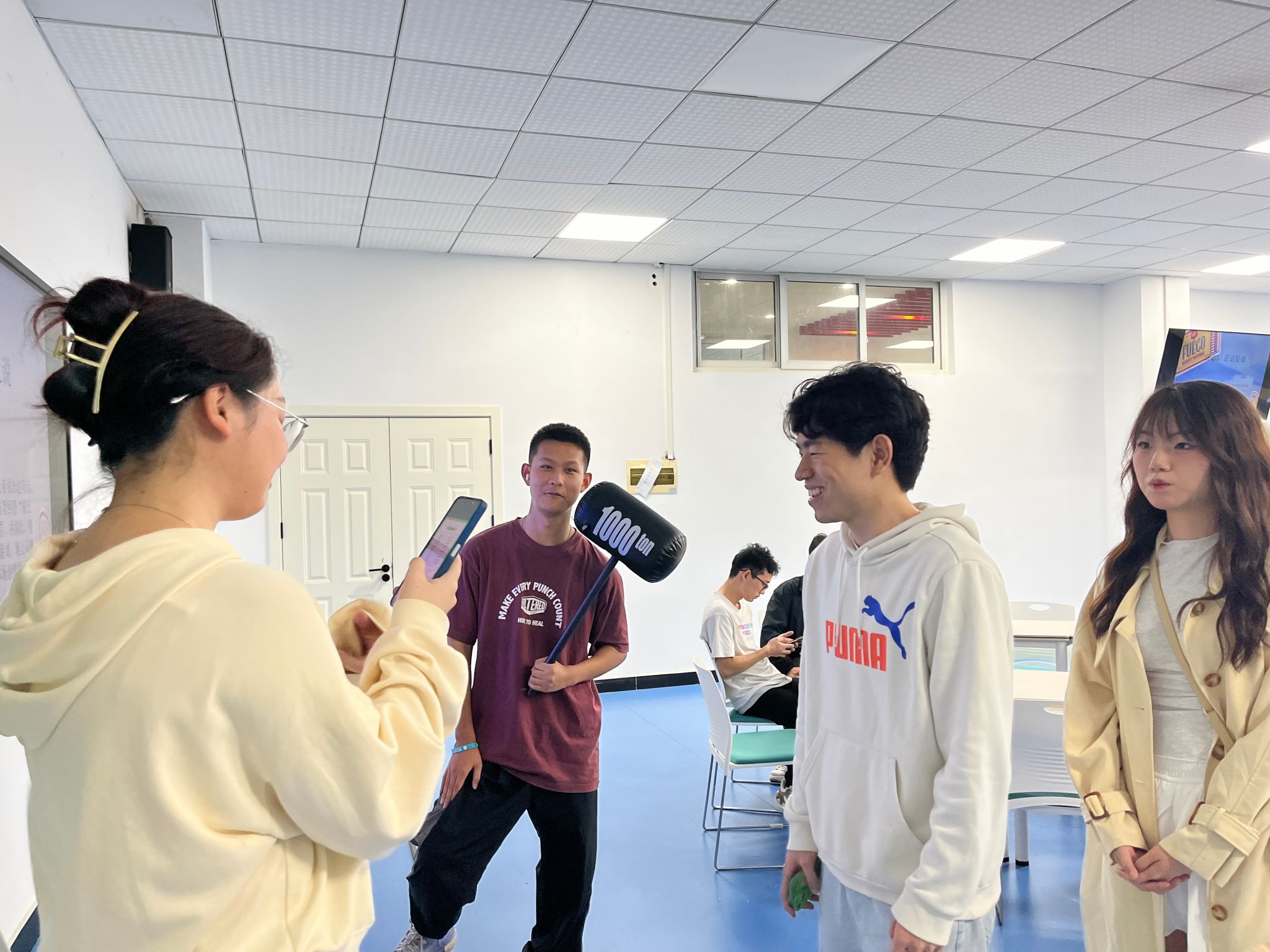 第一个活动是自我介绍。不同于让同学们挨个上台,干巴巴地进行自我介绍的方式,他们选择了不仅要介绍自己还要说出旁边同学名字的方式来进行自我介绍。将大家随机打乱分成4个小组,围成一个圈,以“我是谁旁边的谁、我是谁谁旁边的谁谁谁”来介绍自己,直至介绍至最后一名同学,经过几分钟的热闹谈论,大家快速记住同组的同学,要记住同学们的名字、长相等,这样才能够完成自我介绍。以这种方式开展,介绍的不仅是自己,更在短时间内记住了更多的同学,展示出大家独特的智慧和反应能力。