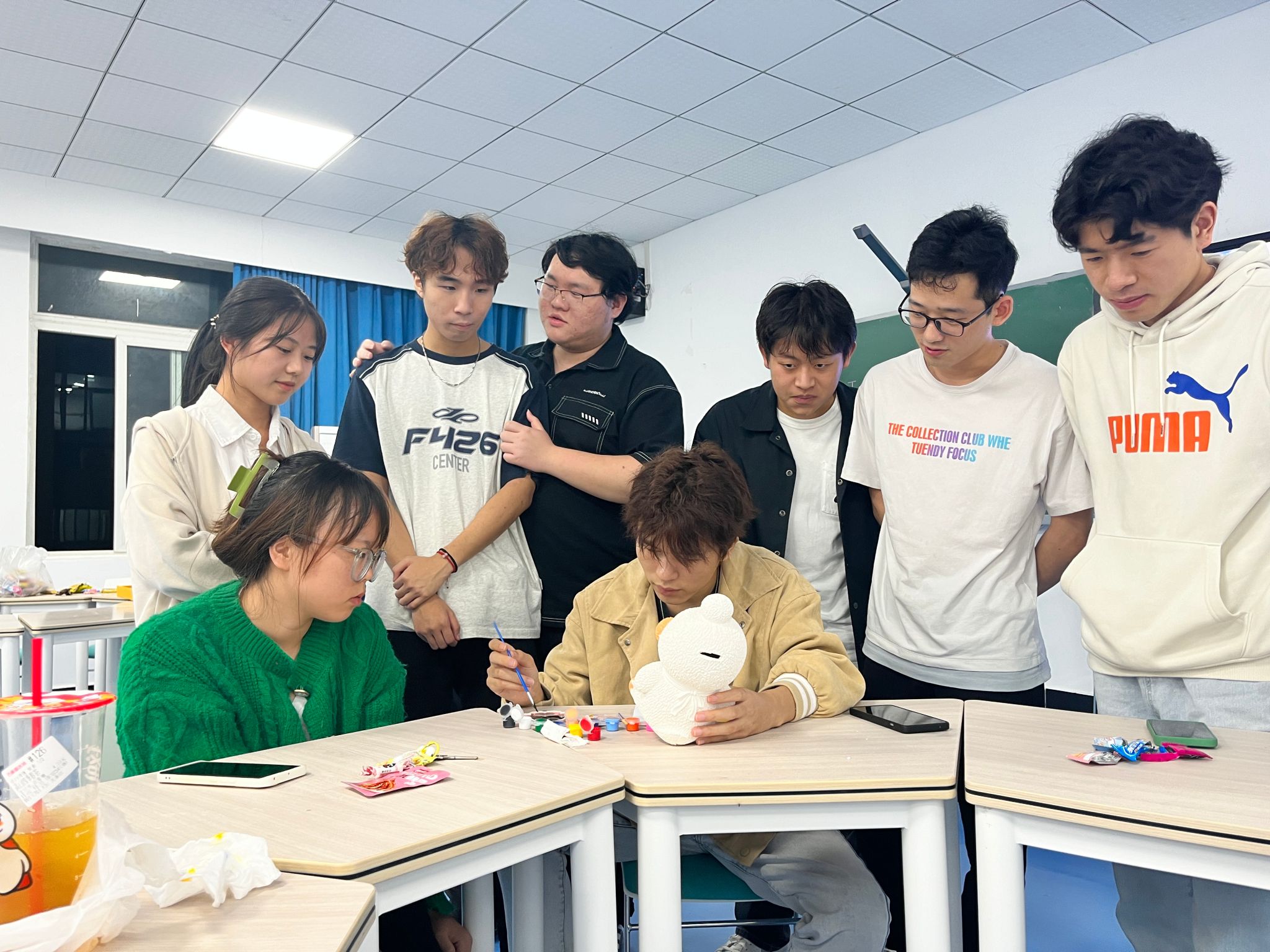 第四个活动是手动DIY涂鸦,这个活动也是本次团建活动的收官游戏。在这个游戏中,同学们可以发挥自己的创意,利用绘画工具进行手工涂鸦创作,同学们讨论着认为应该怎么涂鸦,交流自己的想法,共同协作。每个人都以自己独特的方式表达了内心的想法和个性,展示了他们的艺术才华和团队合作意识,积极讨论,共同动手,最终完成一个作品。