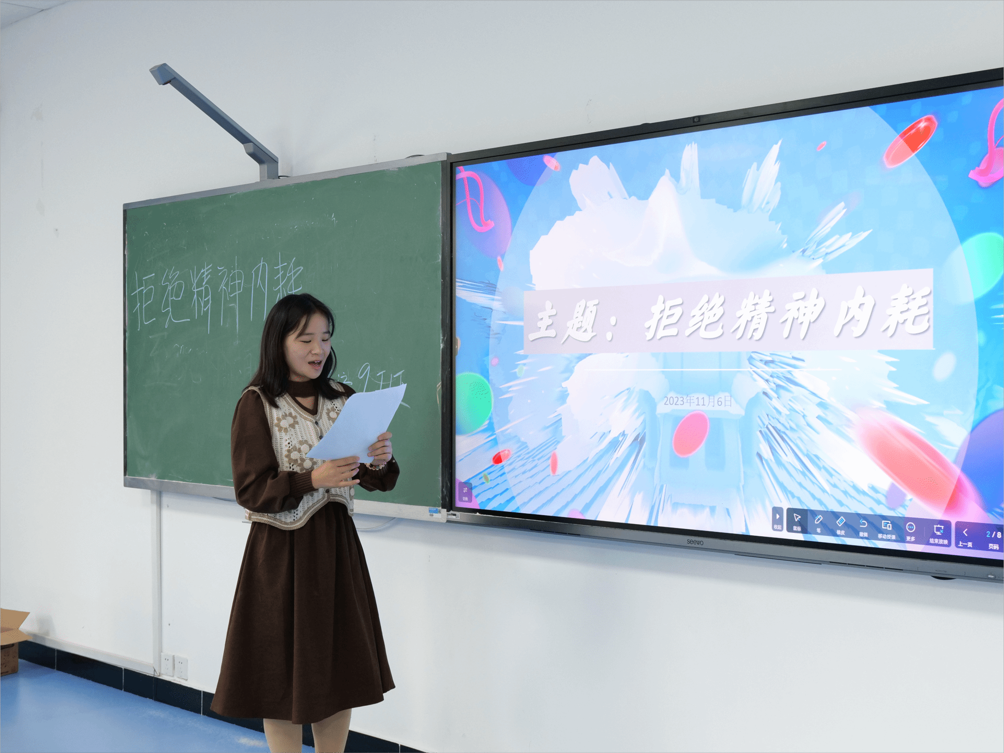 通过本次班会,工商物流9班的同学们收获满满,不仅在活动中认识了新的朋友,同学之间情感交流有所增进。同时,通过主题宣讲,也让同学们学到了“拒绝精神内耗”相关的知识,改变了自己的问题,摆脱精神内耗,清晰的看待生活。