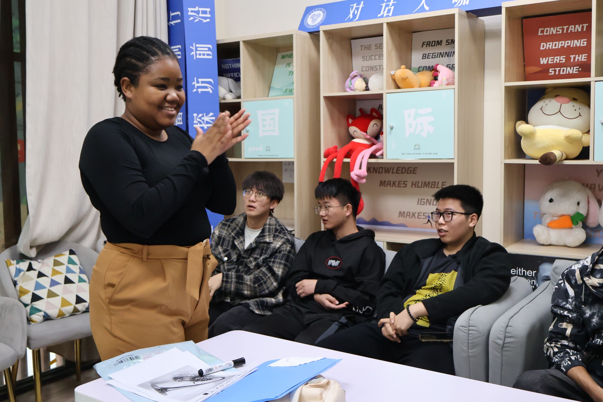 11月8日14:00,鱼城书院联合国际商学院的大鱼海谈工作室举办了英语角第二期外教课堂。这堂活力四射的英语课堂由来自南非的Lindy带领同学们进行,她独特的活力和激情使她成为大学生英语教育的热心倡导者,她的独特魅力和幽默感迅速赢得了在场学生的喜爱。