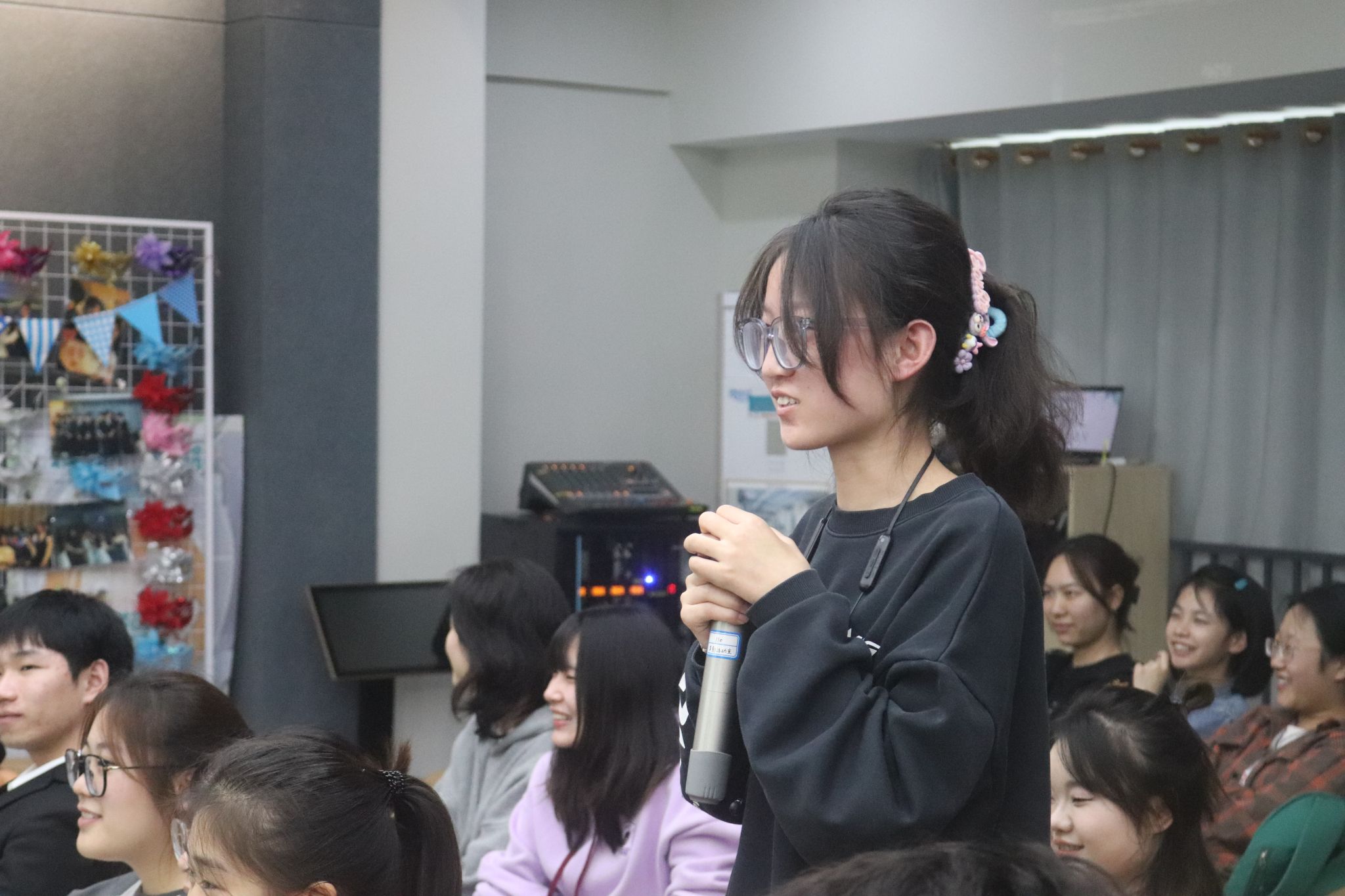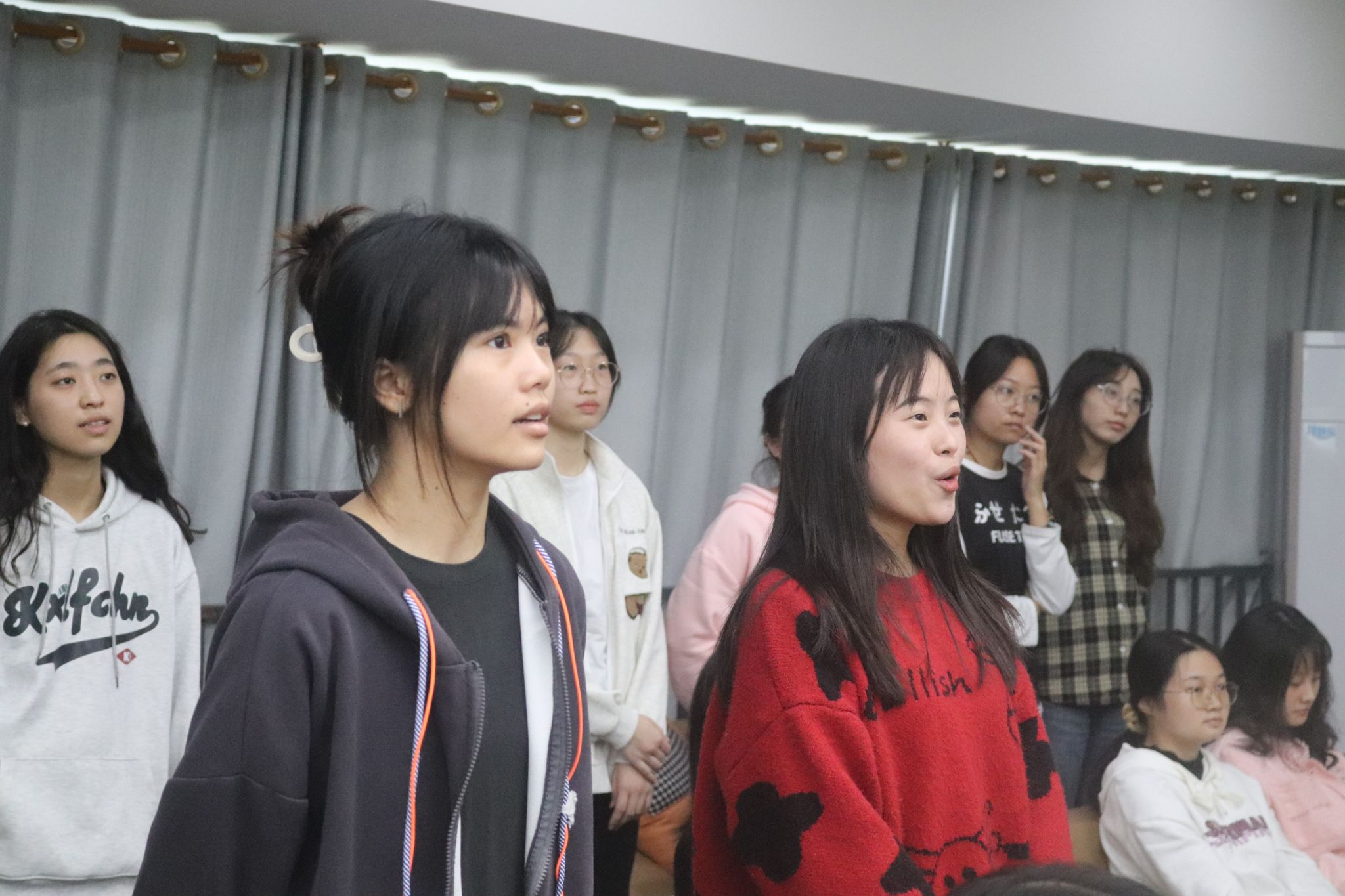多和他人沟通交流也是学好普通话必不可少的过程。在互动环节中,同学们不知如何解决口音所造成的沟通困难,针对这个问题,邓巧老师建议同学们通过正确发音、长期练习和语音训练三个方法,逐渐改善口音,提高与他人的沟通能力。同时,邓巧老师亲身带领同学们进行关于发声的练习,如开嗓练习、气息练习、辨音练习等。同学们在老师的指导下,感受到了与之前发音的不同之处,体会到了普通话的魅力所在。
