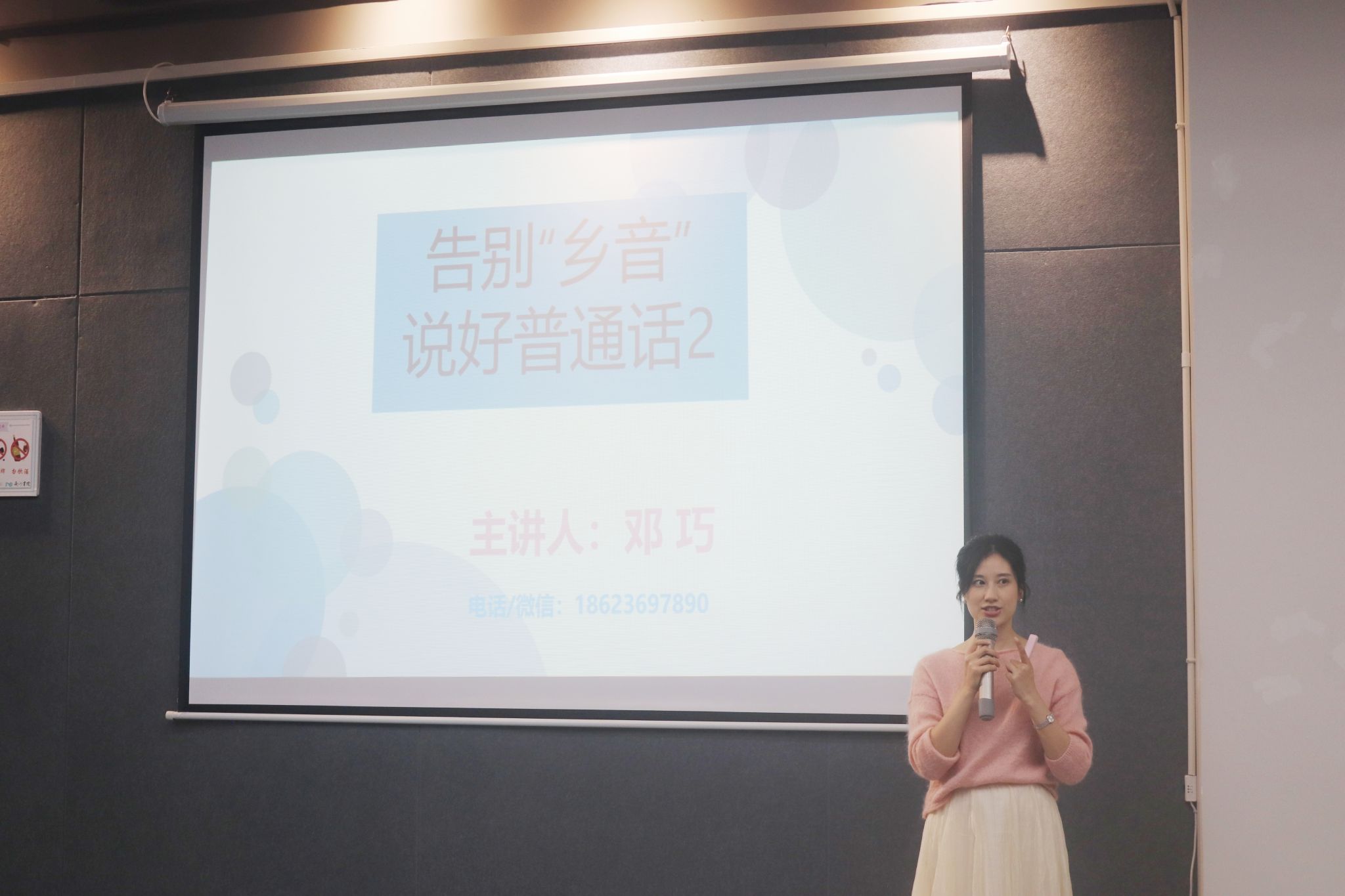 普通话是人与人之间沟通的桥梁,满足了同学们日益扩大交往和自身发展的迫切需求。为助力全校学子提高普通话水平,增强自身交际能力,特此“芳语工作坊”于11月10日在南湖书院声影活动室举办了改变“乡音”,说好普通话2—芳语工作坊第三期表达沟通讲座。本次活动有幸邀请到重庆移通学院创意写作学院、高级礼仪培训师、创新创业导师邓巧作为主讲老师,为同学们进行有关普通话的讲解指导。