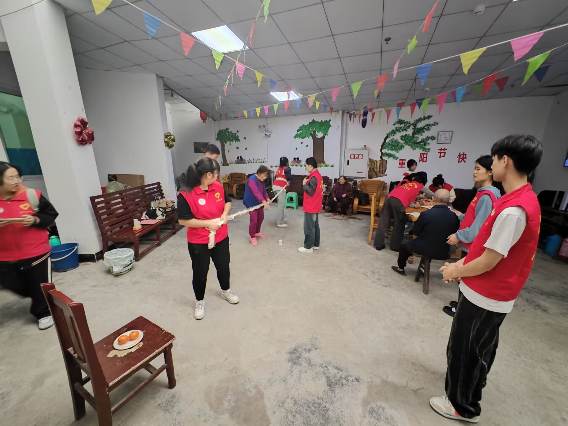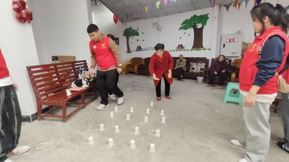 活动伊始,2022级工商管理类01团支部的青年志愿者们为东津沱夕阳红老年公寓的老人们送上诚挚的问候。通过和老人们聊天,志愿者们细致了解到老人们的日常生活。在之后的互动环节中,2022级工商管理类01团支部为老人们带来了精心准备的小游戏趣味套圈。通过趣味套圈这样一款寓意简单却充满挑战性的游戏激发老人们的参与积极性。现场活动氛围浓厚,充满着欢声笑语,老人们笑声掌声连连,一派其乐融融的和谐氛围。这不仅锻炼了老人手眼协调能力,也促进了团队协作和社交互动,老人们也与支部成员之间建立起了紧密的纽带,架起了年轻与老年之间的情感桥梁,铸造了一段难以磨灭的美好回忆。