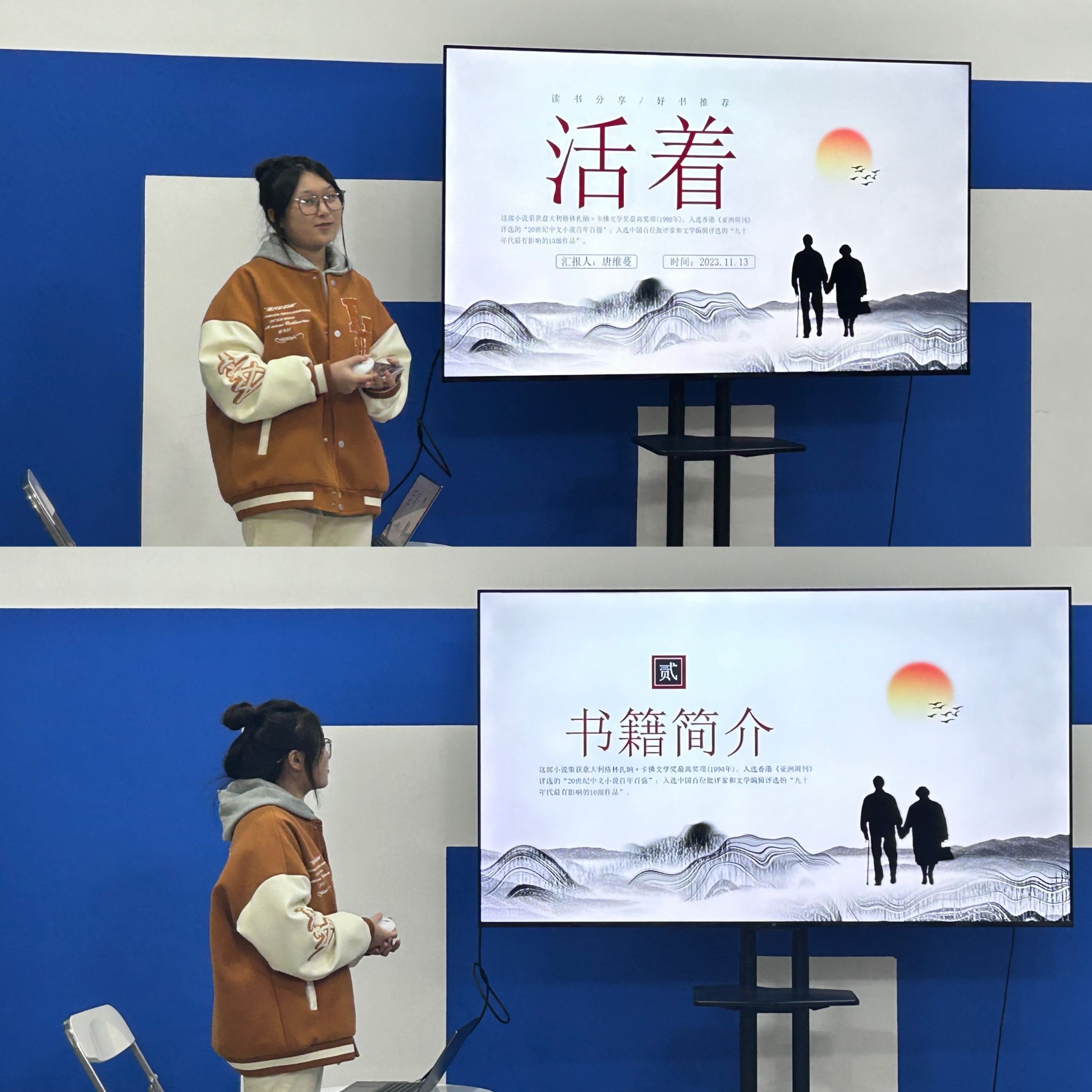 在书香中成长,为人生增色。会议中期,各班班长讲述本班阅读情况、结束状态以及出现的问题,借此机会分析解决上述问题,从而更好的推动书香活动的开展。最后工商管理类1班、2班和3班进行读书分享,唐维蔓同学分享的书籍《活着》,其分享中谈到主人公富贵的命运的坎坷,震撼人的生存能力,当生活一次次苦难要打跨富贵时,他又顽强地站了起来,好好的活着。正如书中所说,人生苦短,爱的时间有限,值得我们好好珍惜和把握当下,细细感受此刻的幸福。