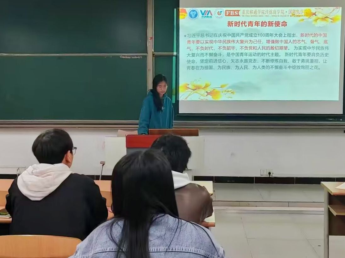 作为新时代的新青年,只有真正认识理解了新时代青年的使命才能够真正正视自身的基本职责,在日后的学习中不断增强自身的能力,成为一个有能力有担当的学生会骨干。为了帮助大家深刻理解新时代青年的新使命,淬炼商学院学生会骨干余灵锐以自身为例向大家讲解其个人对使命的认识与思考。新青年要有坚定的理想信念,才可担当民族复兴大任的时代新人,在新时代新征程中不断增强中国特色社会主义道路自信、理论自信、制度自信、文化自信。