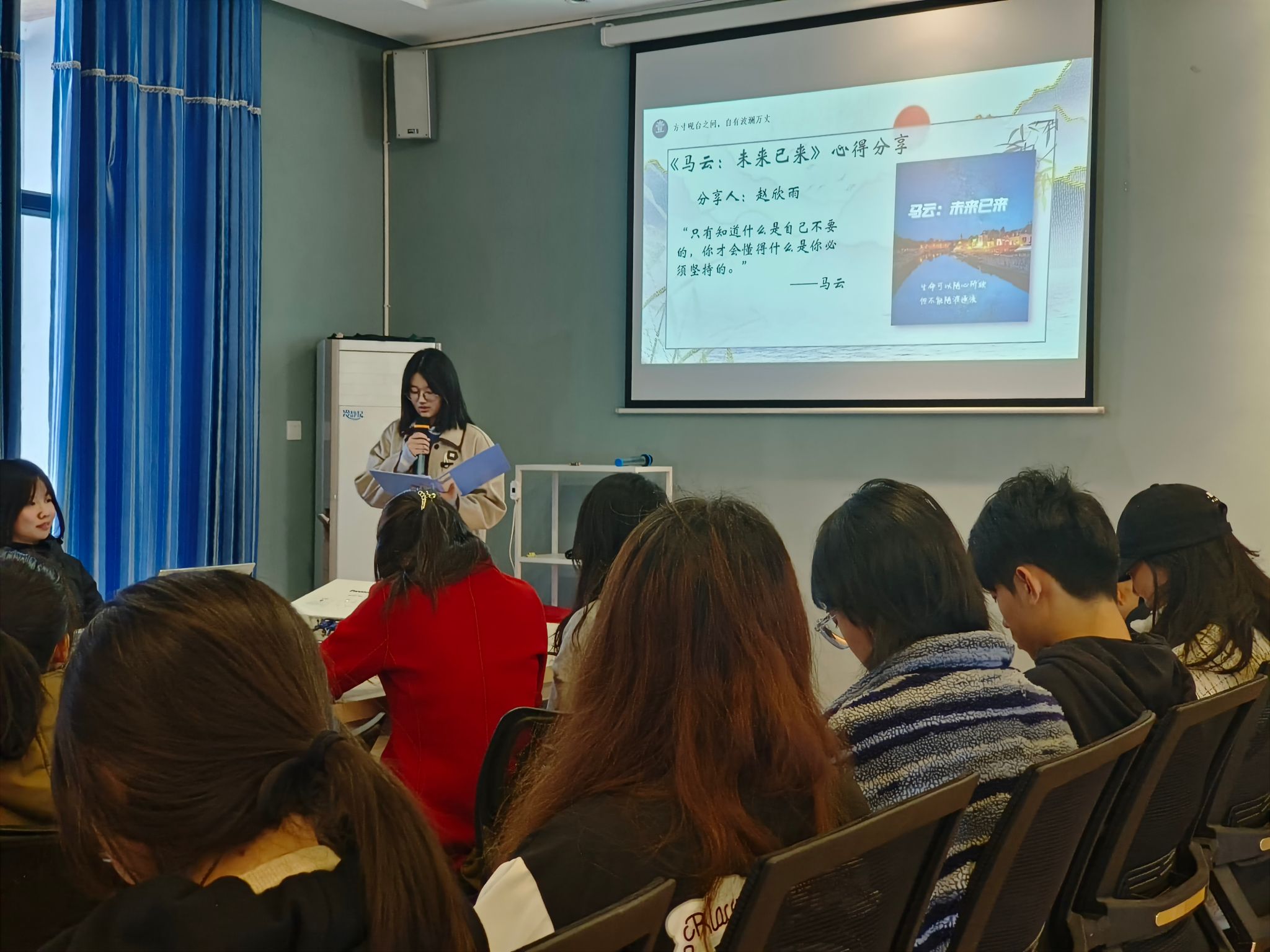 “只有知道什么是自己不要的,你才会懂得什么是你必须坚持的。”赵欣雨同学带来了她的阅读完《马云:未来已来》的阅读心得。什么是未来?未来是被我们预设好的蓝图,而在《马云:未来已来》一书就讲述了马云是如何预设未来,是如何一点一滴构建现实的。大胆的预想互联网时代,大胆的走进风口,脚踏实地一步步将阿里巴巴坐地落实,一点点蓄力向互联网进军,直至最后未来已来。