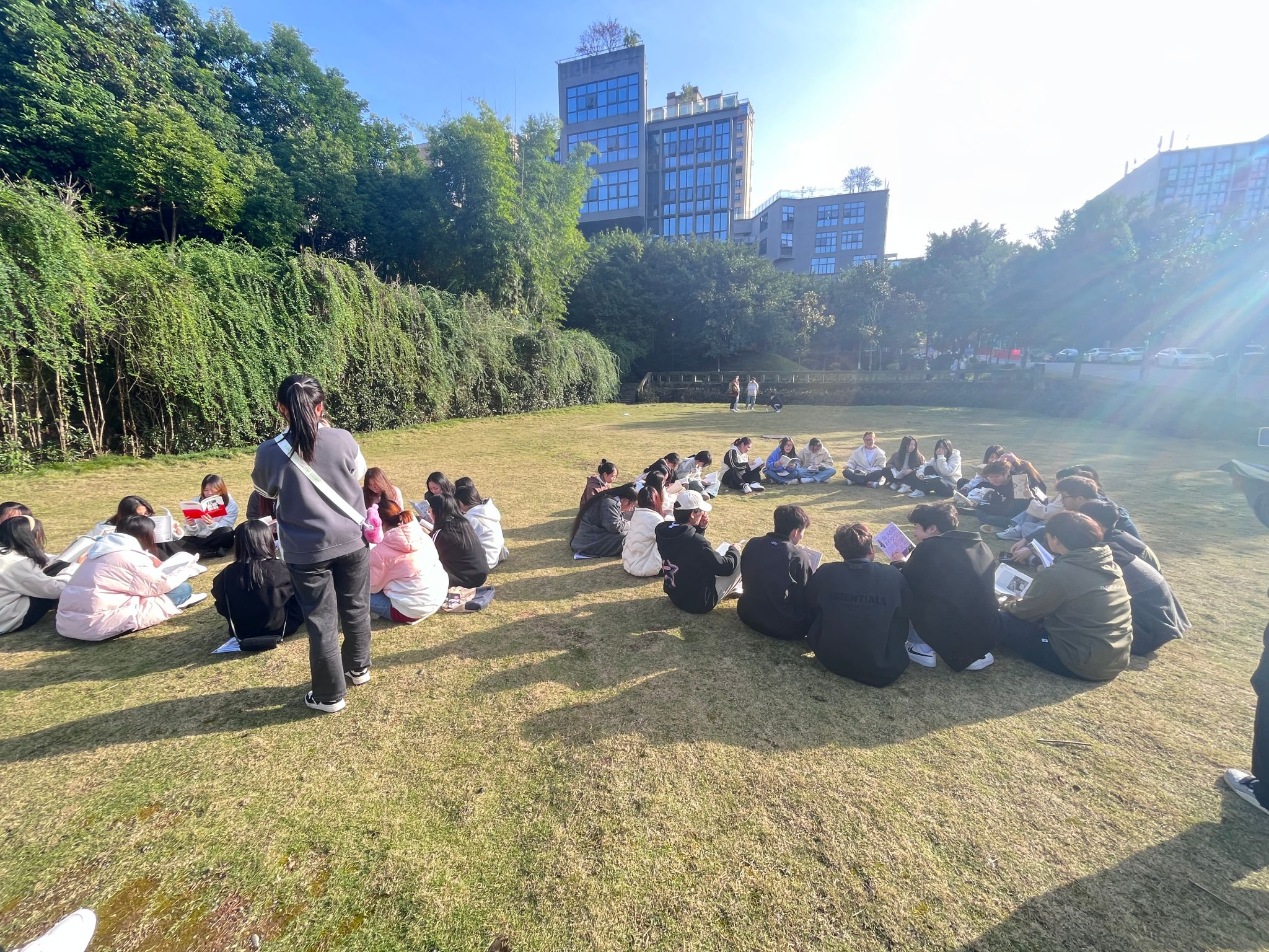 活动伊始,同学们准备好自己喜欢的书籍,课后相聚于双子湖草坪,在草坪上进行阅读互动。现场大家围坐成一个大圈,相互分享书籍,你一言我一语,每个人的脸上都洋溢着笑容。书香混着草木香,同学们在大自然中嬉戏,朗朗书声流连于草木之间。本次活动强调以人为本,倡导同学们尊重自然、享受自然,追求人与自然和谐统一。