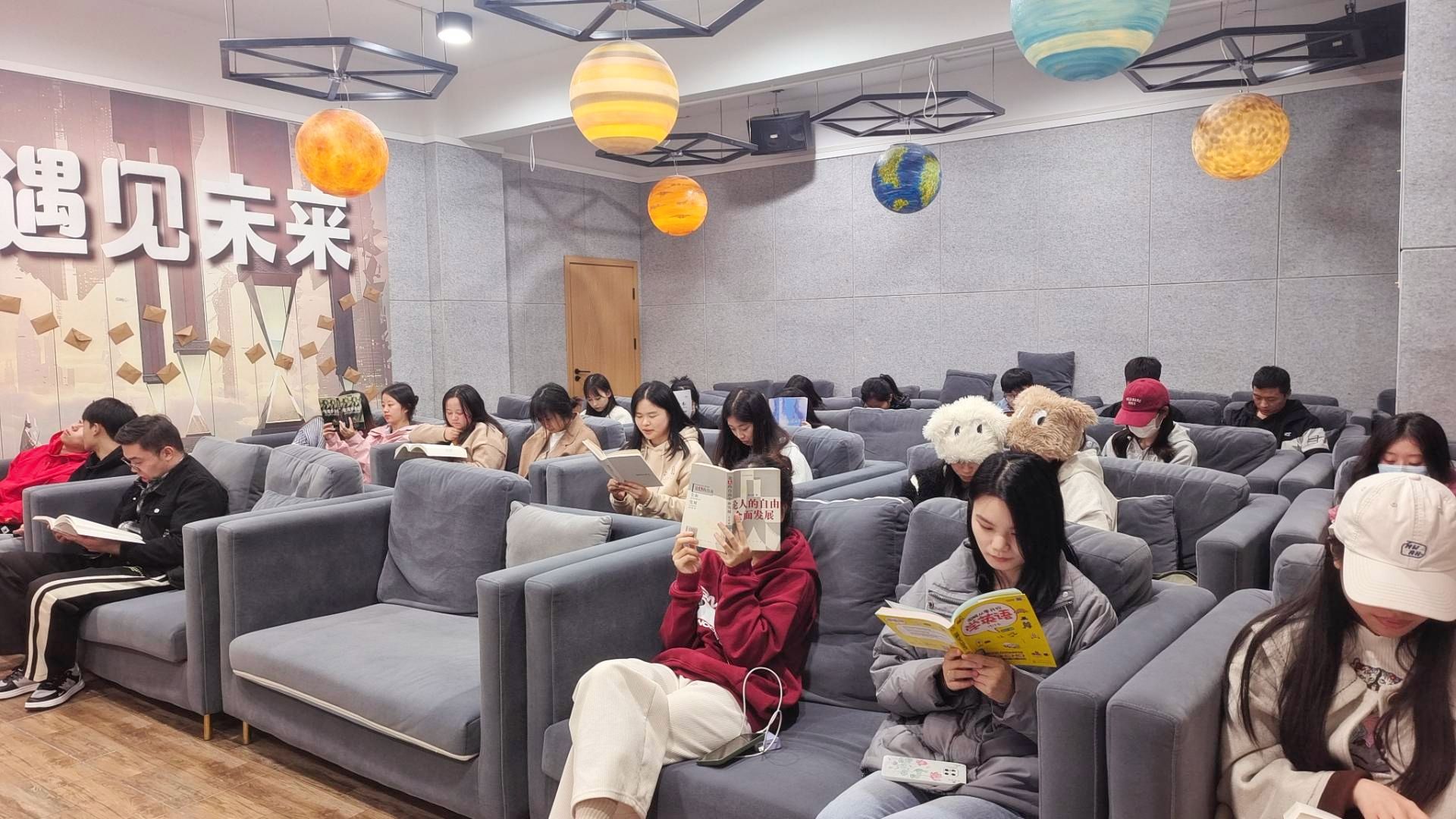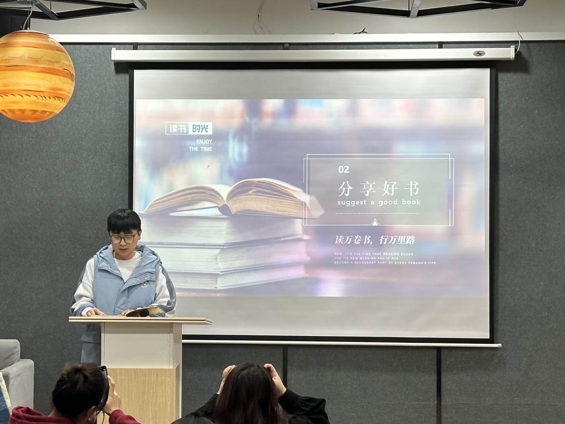 读书分享环节,全体同学积极参与,纷纷准备自己喜欢的书籍进行推荐;猜诗句环节,不少同学没等问题说完便纷纷举手回答,甚至有的同学直接站起来抢答;阅读交流环节,大家依照个人喜好,有的分享党史、有的品读经典古籍、世界名著、有的看专业知识。大家热情洋溢、踊跃发言,积极分享交流读书心得,四处飘溢着书香。