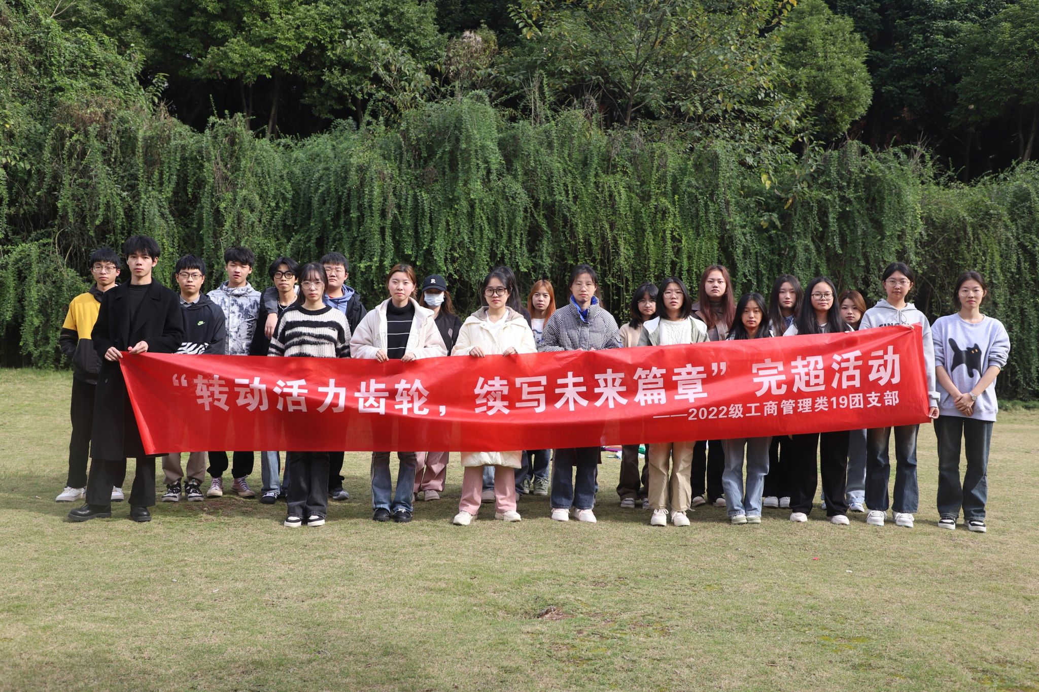 青年者,乃人生之春,绽放之华,亦为进取之峰。在这个充满活力与朝气的阶段,青年者们正是推动历史进程、向美好世界迈进的重要力量。为了激发同学们的青春热情,加强班级的团结与凝聚力,点燃对生活的热爱,肩负起时代的使命,更好地迎接未来,2022级工商管理类19团支部于2023年11月19日齐聚于双子湖畔,举办了以“转动活力齿轮·续写未来篇章”为主题的第二期超级完满团支部活动。