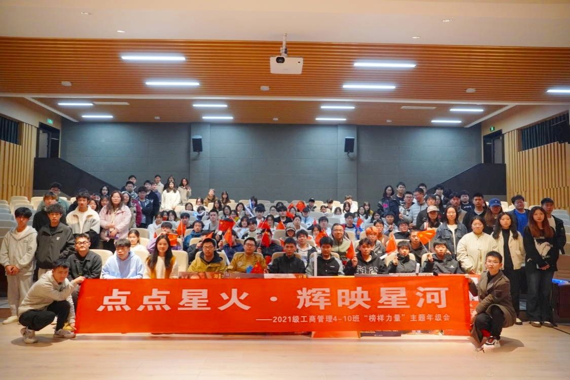习近平总书记指出:“像英雄模范那样坚守、像英雄模范那样奋斗,我们要发扬他们的精神,从他们身上汲取奋发的力量”。为加强榜样育人,增强榜样力量,使榜样力量内化于心、深化于行。重庆移通学院淬炼商学院2021级工商管理4-10班于2023年11月20日在六度空间无限多功能厅开展了本月“点点星火·辉映星河”——“榜样力量”主题的年级会。