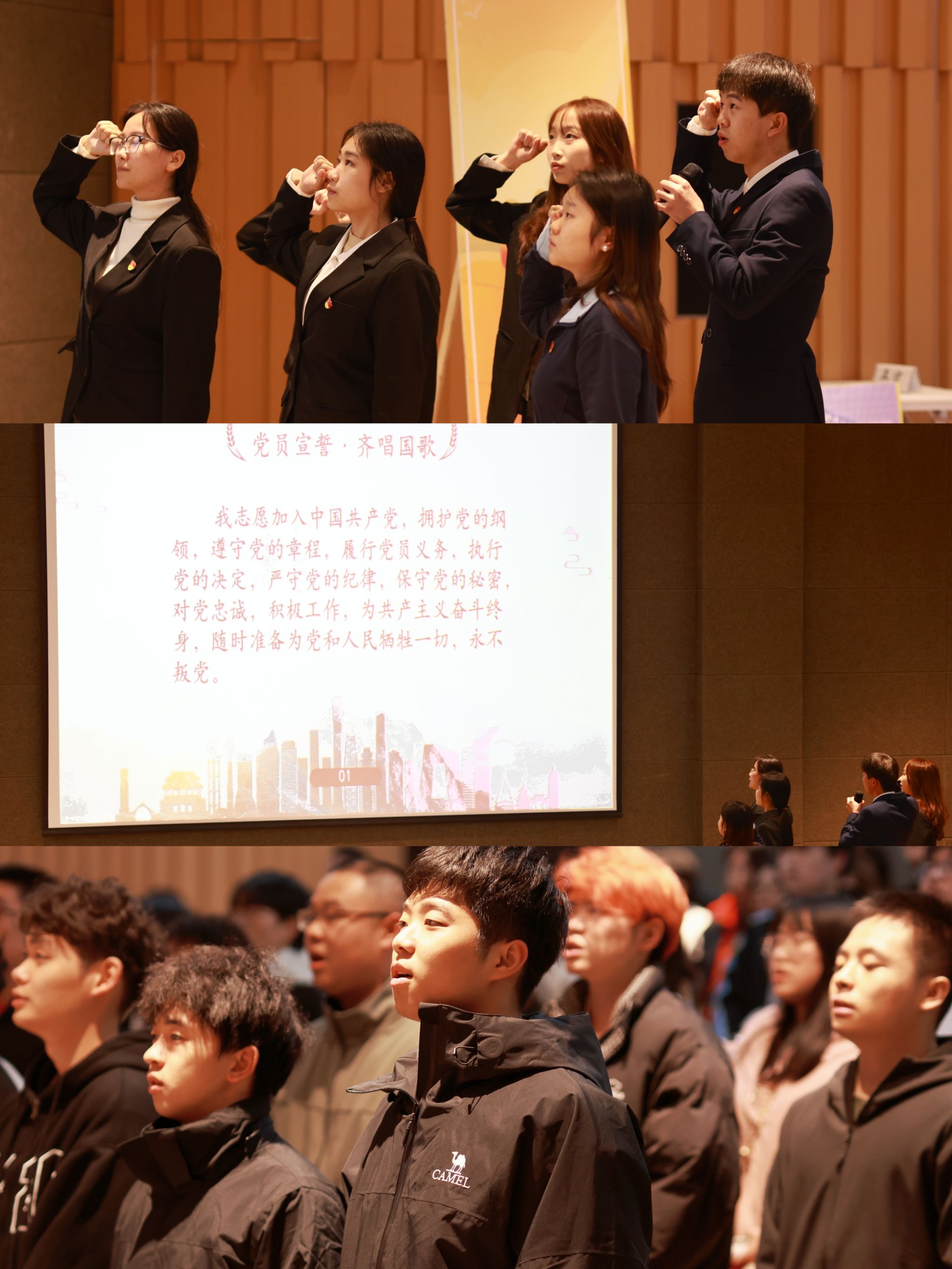 为进一步鼓励同学们像优秀党员看齐,像模范英雄人物学习,在年级会开始前我们和淬炼商学院样板党支部联合举行了党员入党宣誓仪式和唱国歌环节,我们要明白:作为党员要时刻牢记党员身份,以党员的标准衡量自己,自觉履行党员义务,更好地践行全心全意为人民服务的宗旨。