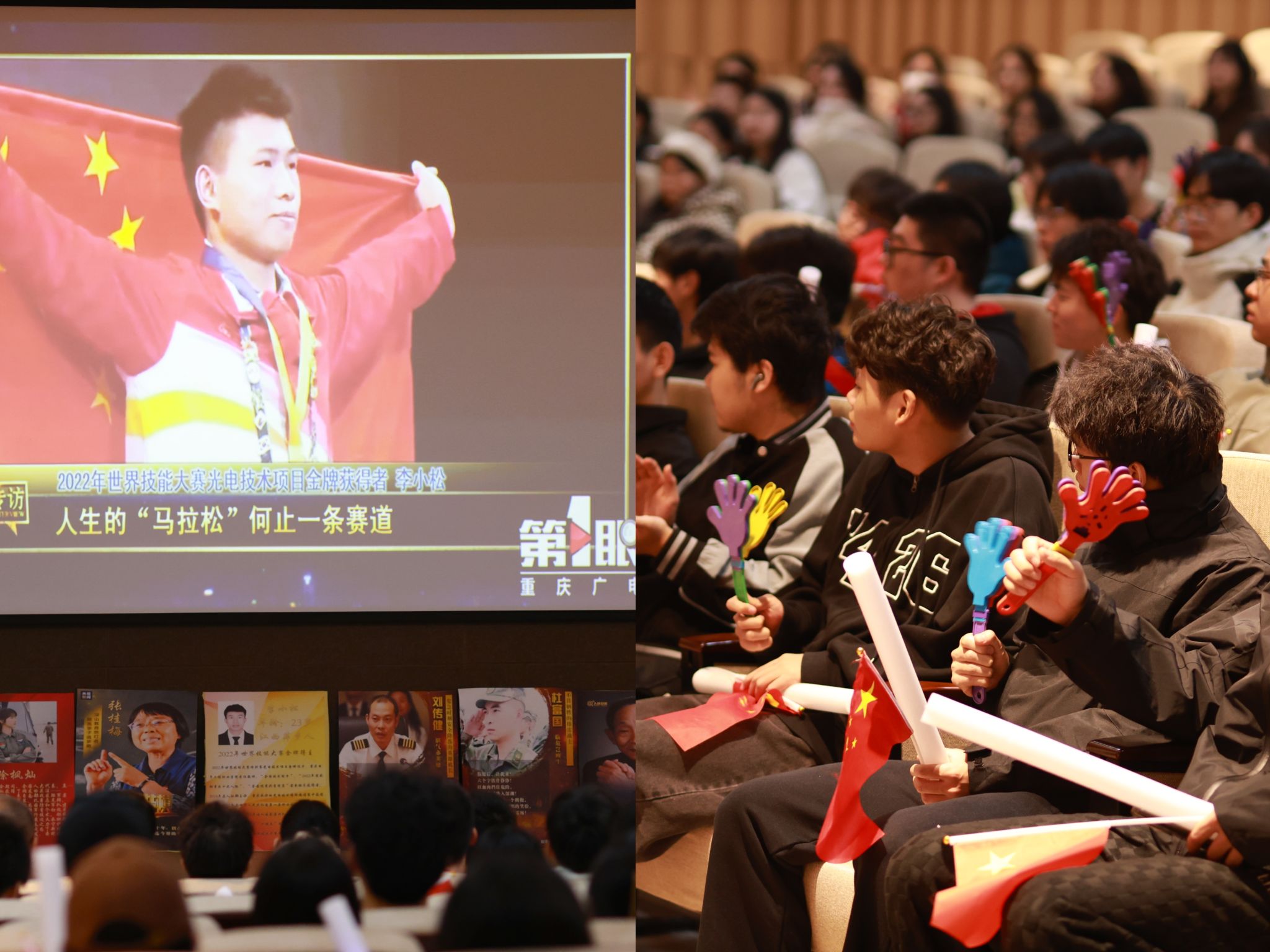 本次主题年级会特别邀请到了2022年世界技能大赛冠军、2022年感动重庆十大人物的获得者李小松,重庆移通学院2022-2023学年完满达人的获得者殷凯。