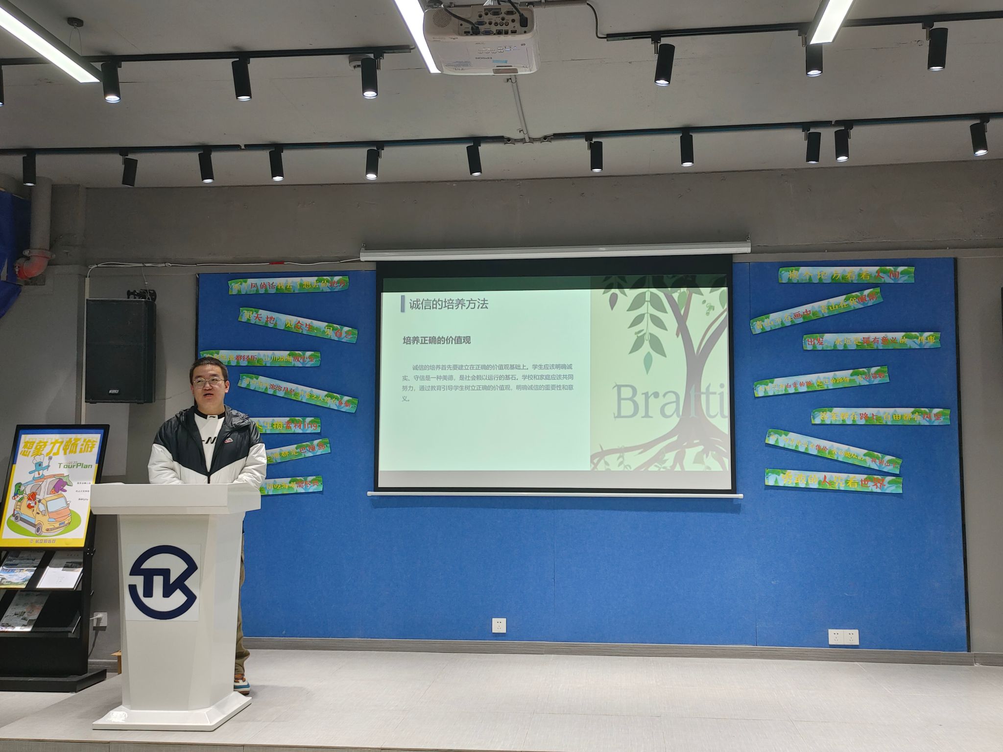 为宣传诚实守信的生活理念,普及诚信知识,增强青年学生的诚信意识和道德素质,倡导同学们进一步把诚信观念,内化于心,外化于行。23班邀请了德国工程学院辛博学长在天空长空报告厅为同学们进行诚信宣讲,辛博学长讲解了在大学阶段的考试纪律,并结合以往学院案例对同学们进行了警示教育,以增强学生的诚信考试意识。诚者,开心见诚,无所隐伏也;信者,诚实不欺,信而有征也。我们作为青年大学生,要明确自己身上的职责与使命,切实在生活与学习中真实无欺,言行一致。通过辛博学长的宣讲后大家对诚信又有了更深层次的理解。