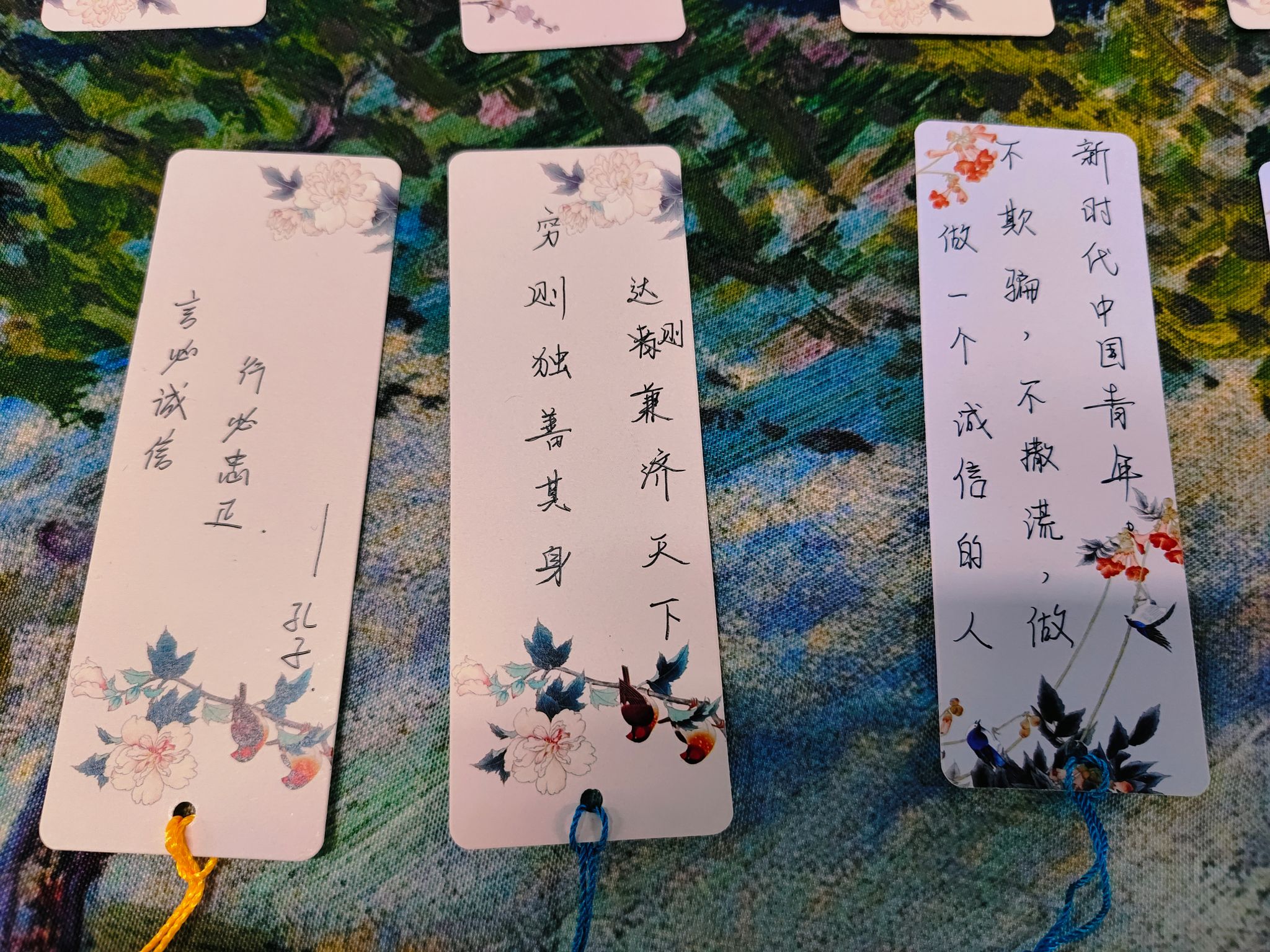 在宣讲活动结束后,进入诚信互动环节,分别是网络诚信知识答、诚信书签。这个活动让同学们明白网络空间也是需要诚信的,同时也是对同学们诚信观念的考验。诚信,是华夏儿女世代坚守的美德,因此同学们在答题和书写诚信书签时,也会去思考到底什么是诚信?正所谓小信诚则大信立。看着书签上同学积极的写自己最近做过的诚信小事,和诚信问题回答正确时,让我们觉得这一次活动更加的有意义。