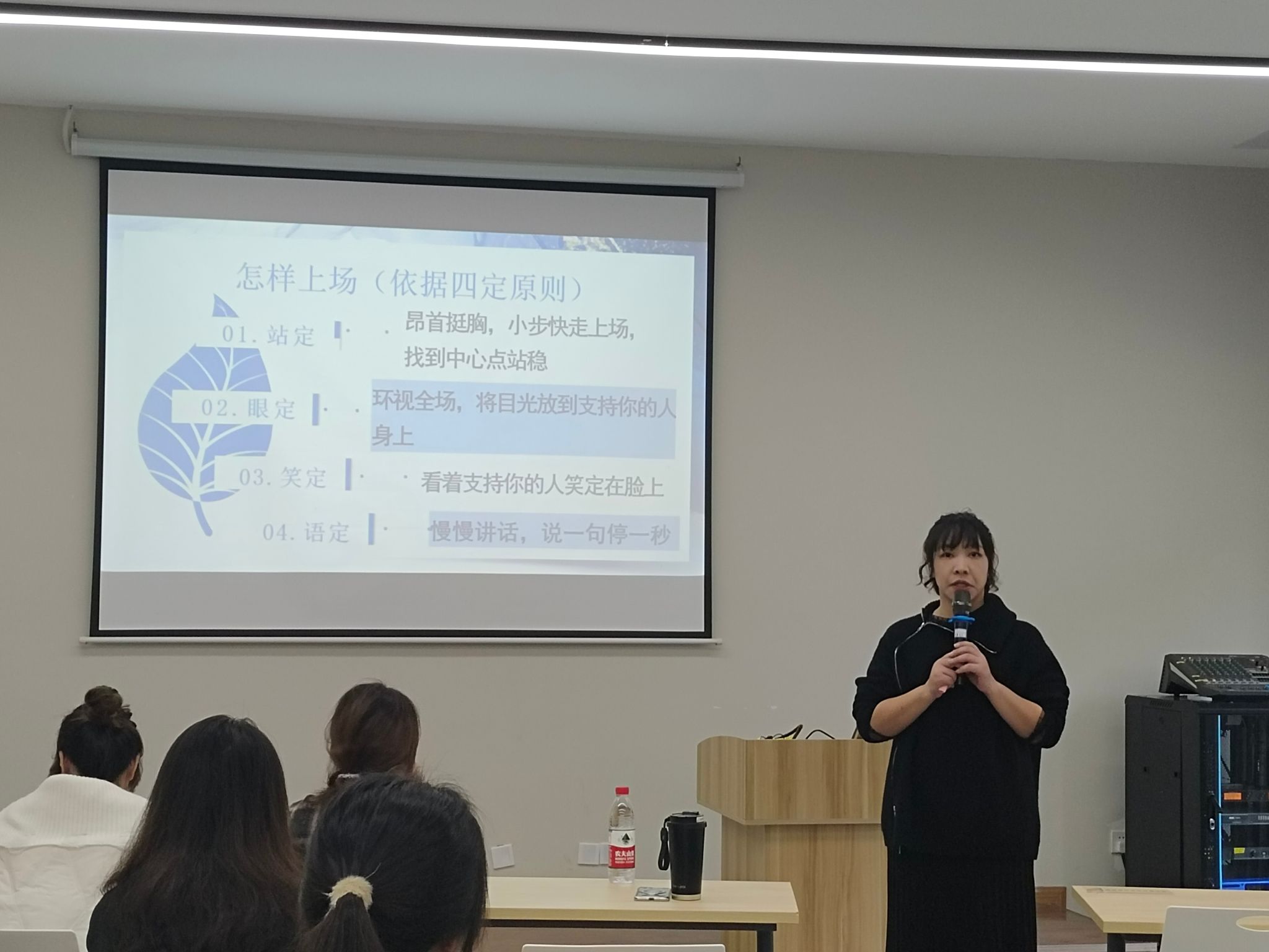 控场力是一个优秀的演讲者或领导者必须具备的。为帮助淬炼学子培养自身控场力,做舞台的主角,由就业创业指导中心主办,淬炼商学院就业助理团承办的掌控全局·做舞台的主角1——芳语工作坊第四期控场力讲座于2023年11月22日在南湖书院智慧教室顺利举办。本次活动有幸邀请到滨海时报专栏作家,《特别关注》和《青年文摘》签约作家,重庆移通学院创意写作学院老师田一洁作为本次讲座的主讲老师,为同学们进行有关控场力的讲解指导。