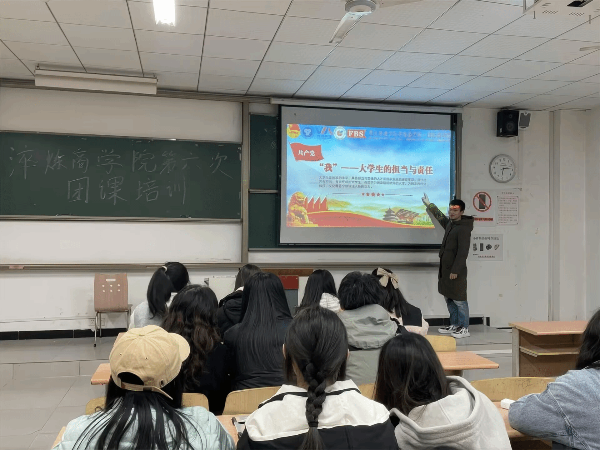 为深学笃用习近平新时代中国特色社会主义思想,认真学习宣传贯彻党的二十大精神,深入贯彻二十届中央纪委二次全会精神,落实共青团重庆市委《“青春路•廉同行”重庆市“青春倡廉”行动2023年工作方案》,进一步加强青年干部教育管理监督,引领全校广大青年倡树学廉思廉践廉新风尚,帮助大学生扣好“第一粒扣子”,2023年11月21日12:30淬炼商学院学生会主席团陈文华为学生组织干部、干事在五教一楼5015教室开展“青春倡廉”主题活动。