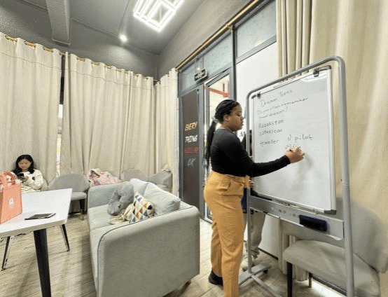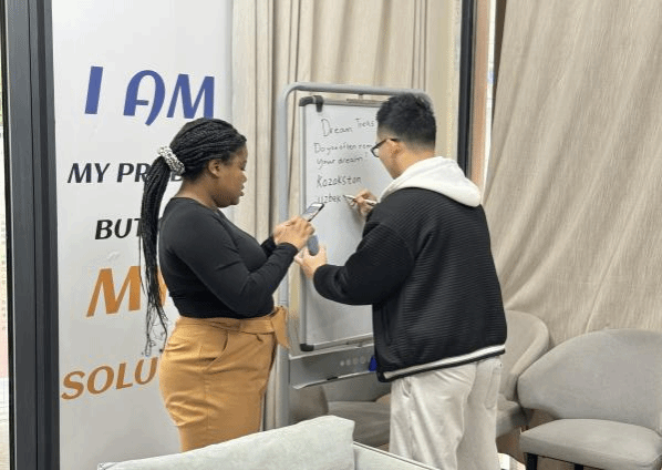 本次英语角活动依旧内容丰富多彩,涵盖了多个主题和形式。首先,活动开始前,Lindy老师进行了热情洋溢的开场白,鼓励大家大胆开口,积极参与。接着,学生们以个人展示的形式展开自由交谈,话题涉及梦想、音乐、生活等多个领域。在轻松愉快的氛围中,学生们锻炼了自己的口语表达和听力理解能力。