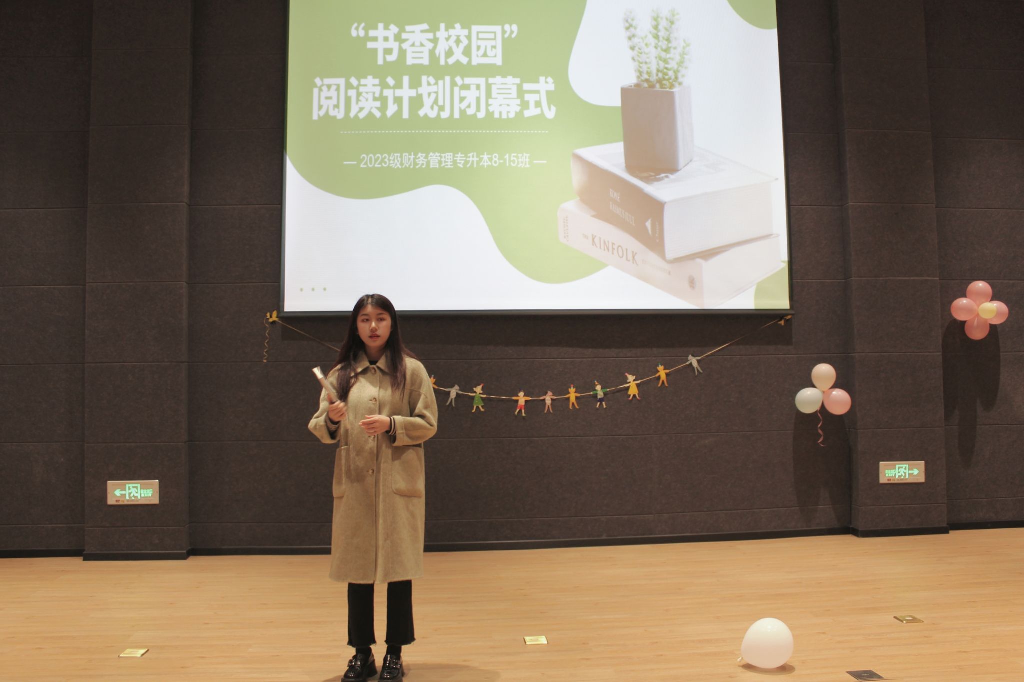 接下来辅导员老师杨子莹上台对“书香校园”阅读计划进行了总结,她表示:大家应该深刻认识到读书对于个人成长的重要性,希望大家继续保持良好的阅读习惯,不断充实自己的知识,提升自己的素养。最后辅导员老师杨子莹鼓舞大家继续借书进行阅读,活动虽止,但阅读不停。