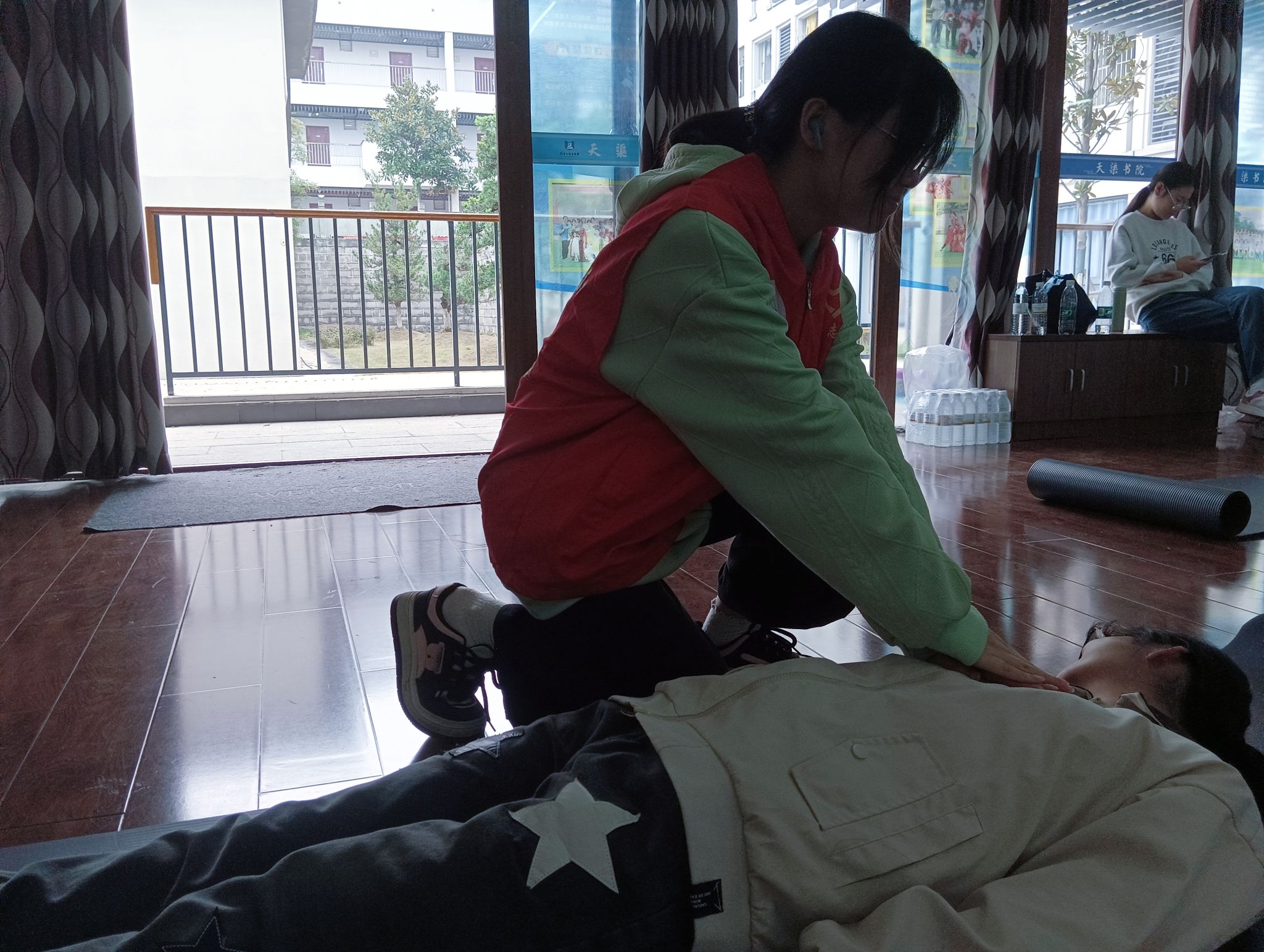 双手交叠,掌根发力,宛如启动生命引擎的活塞,唤醒沉睡的躯体。老师以生动有趣、深入浅出的方式向参与者们讲解心肺核心训练的知识,而志愿者们提前学习过相关实践操作技巧与心肺核心训练知识,便在一旁向参与者细心讲解与补充,配合准备好的训练视频,每一个环节都有序的进行。老师在指导动作的过程中阐述心肺核心训练的重要,表明适当的训练可以释放压力、调整情绪。