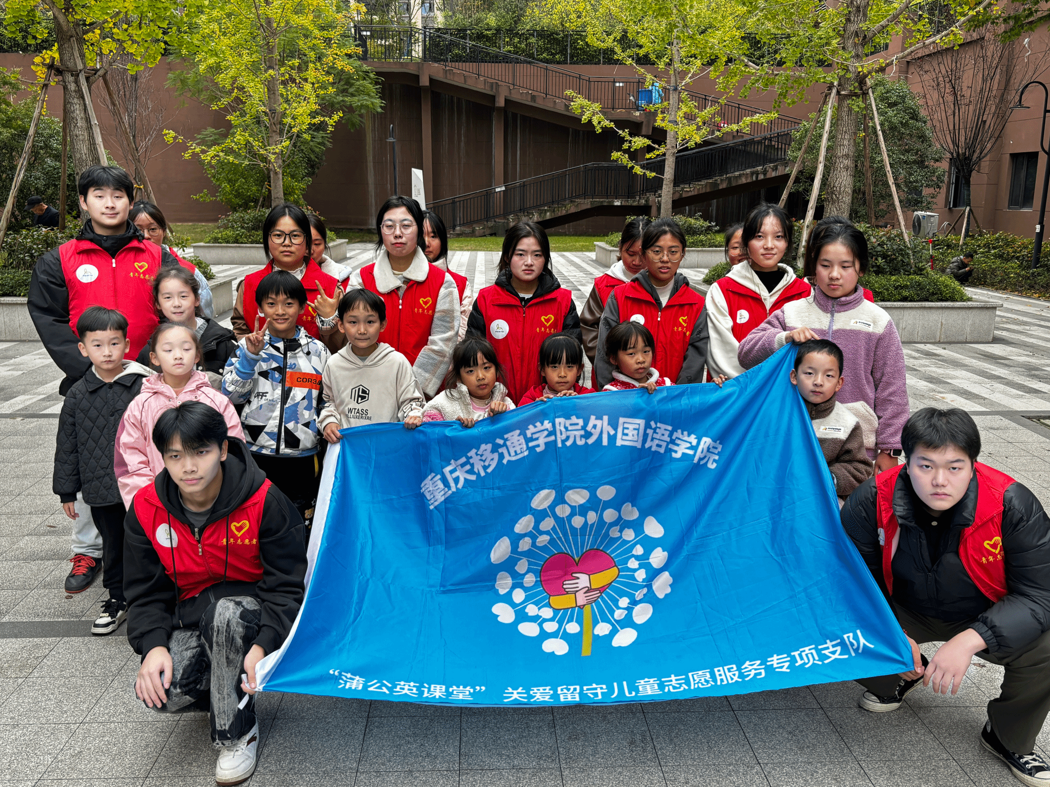 关爱留守儿童,传递爱心温暖。2024年11月23日14:00 - 16:00,重庆移通学院05022302团支部联合外国语学院青年志愿者协会于碧桂园智慧家开展了“情暖童心,爱心启航”“蒲公英课堂”志愿活动,为留守儿童带去关怀与帮助,用实际行动诠释了社会责任与担当。此次活动不仅提升了孩子们的幸福感和归属感,还增强了大学生参与社会公益的热情,希望有更多人参与到实际行动中去将这份爱心传递下去。