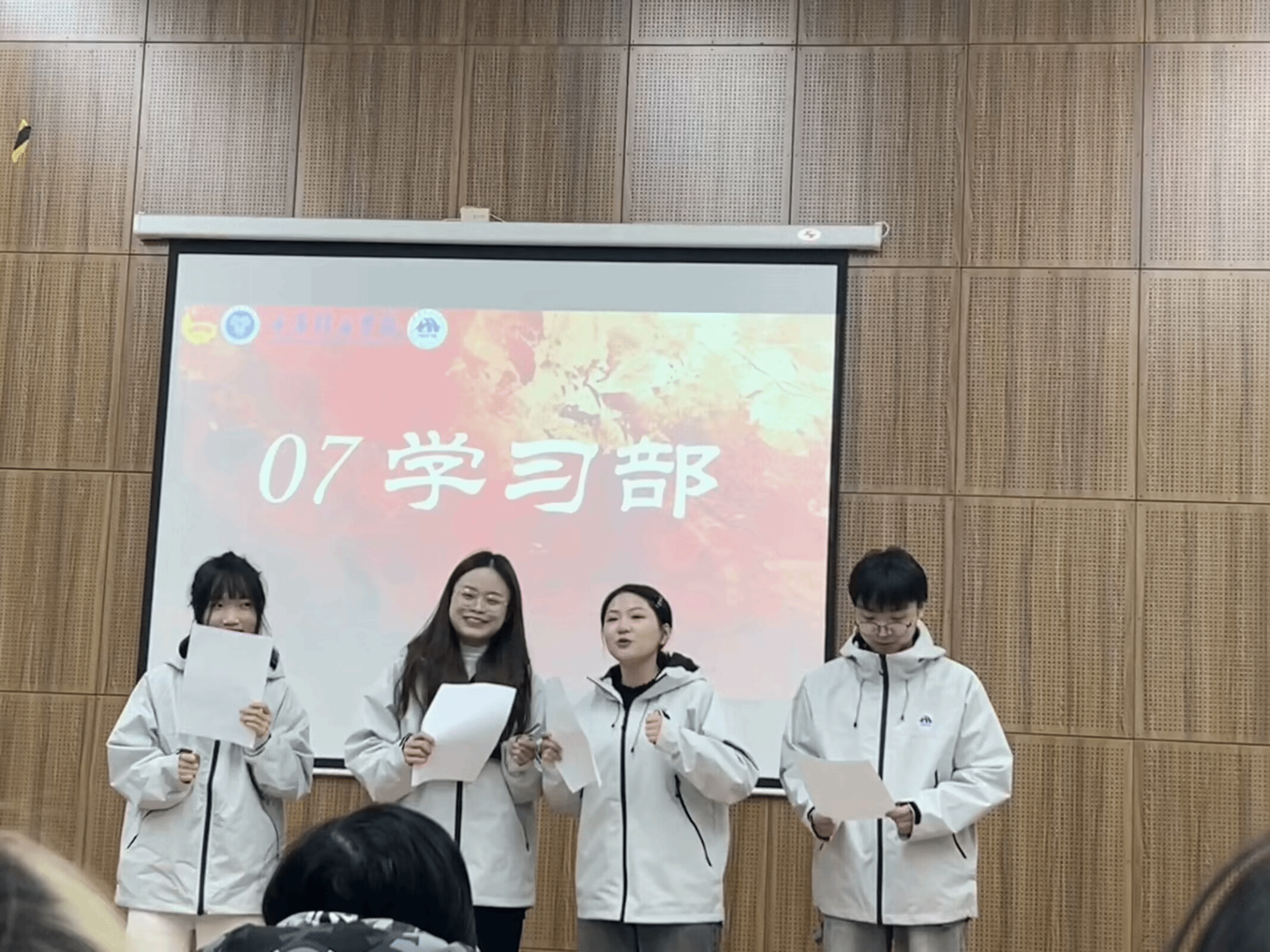 大会拉开帷幕之际,所有在场的干事和干部们齐声高唱团歌。那激昂的旋律瞬间将气氛推向高潮。紧接着,屏幕上开始播放一段精心剪辑的总结视频,通过这些珍贵的影像,我们见证了团队协作的美丽篇章,感受到了那份沉甸甸的责任与担当,以及每个人用实际行动谱写的奋斗之歌。