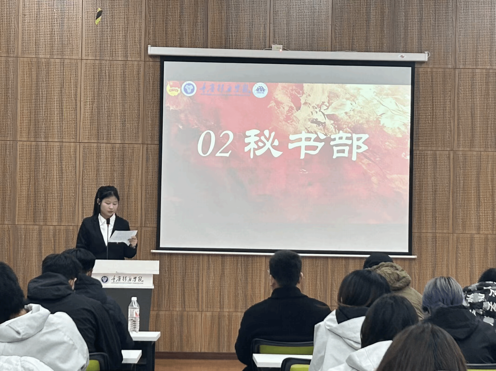 随后,各组织的代表依次登台,以演讲、PPT演示、视频播放和歌唱等丰富多彩的形式,生动再现了这一学期以来的工作亮点与辉煌成就。每一个精彩瞬间,都凝聚着团队无尽的智慧与辛勤的汗水;每一份来之不易的成绩,都是大家拼搏奋斗的见证。在演讲中,代表们不仅分享了个人的心得体会,还深情表达了对团队合作深刻感悟,以及对未来的坚定信心。每一次发言,都仿佛是一颗种子,在听众心中播下了希望与力量,预示着更加灿烂的明天。