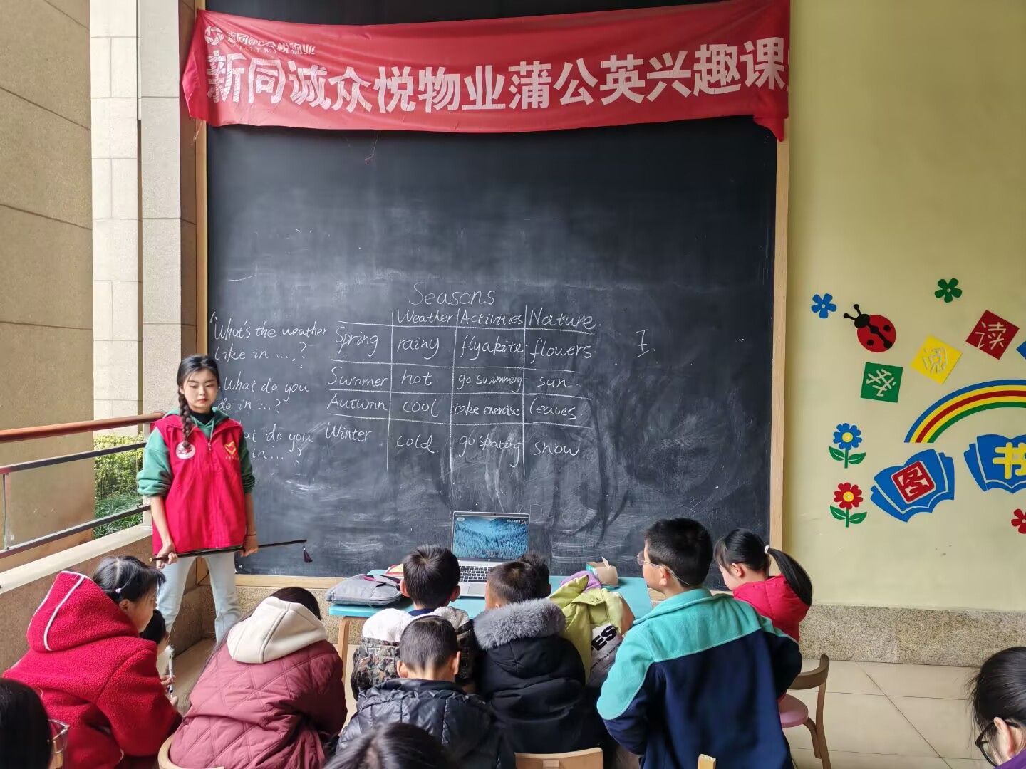 课堂上,志愿者们充分发挥专业优势,以生动活泼的教学方式开启了英语学习之旅。通过一首的英语诗歌《spring morning》,迅速吸引孩子们的注意力,让其跟着老师一起朗读,轻松地进入英语学习的氛围。接着,小老师拿出色彩鲜艳的单词卡片,教孩子们认识各种季节和活动的英文表达。“spring”“winter”“autumn ”……孩子们跟着志愿者大声朗读,稚嫩的童声在教室里回荡。为了加深孩子们的记忆,志愿者还模仿英语发音,引导孩子们纷纷跟着读,课堂气氛十分活跃。
