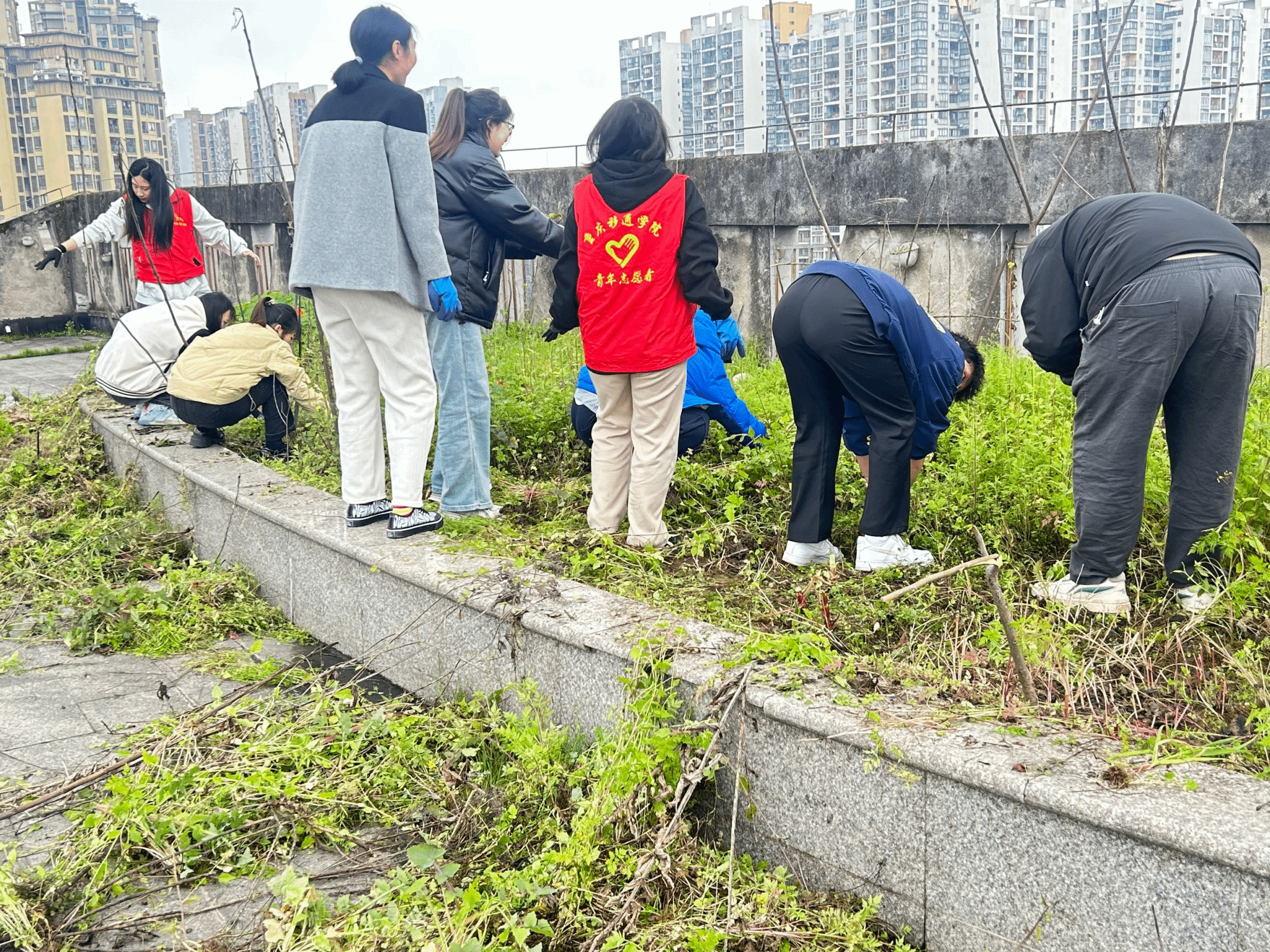 在农耕环节,青马学员小心翼翼地将嫩绿的菜苗栽种到土地中。每一株菜苗都承载着他们对未来的美好祝愿,也象征着他们对环境保护的坚定信念。栽种过程中,大家相互配合,耐心细致,展现团队协作的精神。与此同时,除草工作也在同步进行。青马学员手持工具,认真清理北苑食堂周边的杂草,创造良好的校园环境。除草过程中,大家不怕脏、不怕累,用实际行动诠释劳动的价值与意义。
