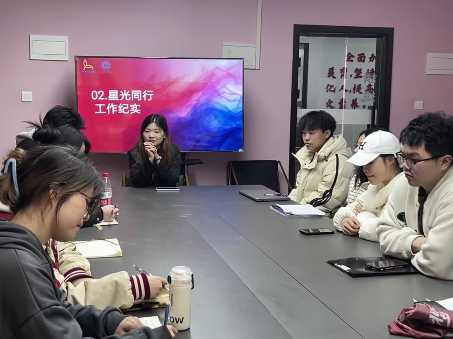 会议伊始,各部门代表依次进行工作介绍,全面复盘过去一段时间的工作成果。外院青协在志愿者招募方面独树一帜,借助新媒体平台强大的传播力,精心制作吸睛的短视频与图文海报,成功吸引大批身怀不同特长的同学踊跃加入,源源不断地为志愿服务注入新鲜血液。不仅如此,外院青协还定期组织新闻稿培训,干事们在活动宣传上的能力显著提升,每次活动都能实现及时、有效的传播,收获到广泛的关注。