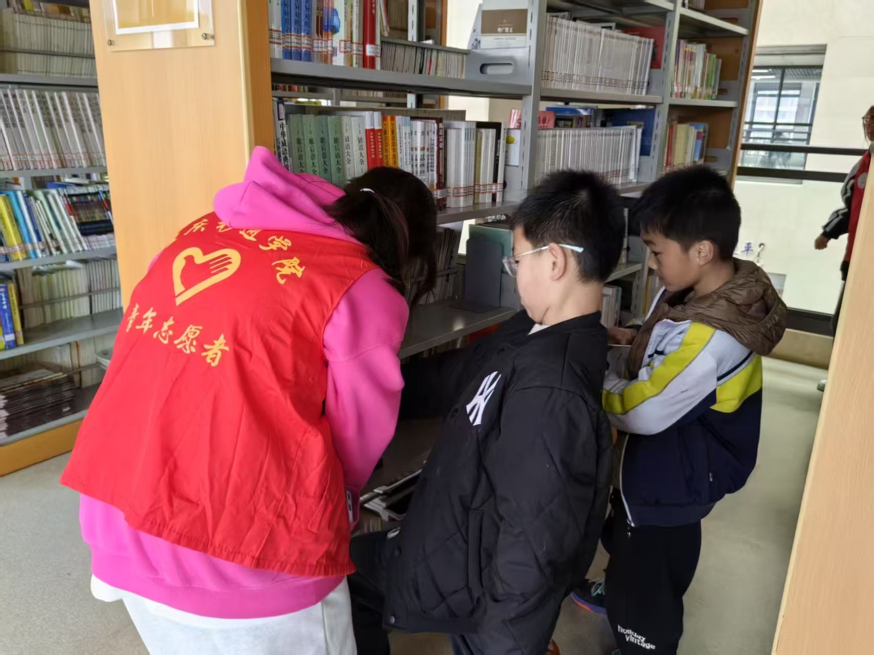 活动伊始,图书馆工作人员向志愿者们详细讲解图书分类规则与整理流程,大家迅速分组投入到紧张有序的工作中。志愿者们耐心地将一本本图书分类排序,让原本略显杂乱的书架逐渐变的整齐有序。 志愿者们秉持着高度的责任心,对书籍进行严谨细致的整理工作,确保每一册图书都能得到精准分类与妥善摆放。在儿童阅读区域,志愿者们以邻家哥哥姐姐的形象与小朋友们积极互动,耐心且准确地解答小朋友们提出的每一个疑问,为志愿服务活动增添温暖与欢乐。志愿者们的无私奉献与全身心投入,为图书馆营造出充满活力和朝气的氛围,吸引更多读者利用图书馆资源。