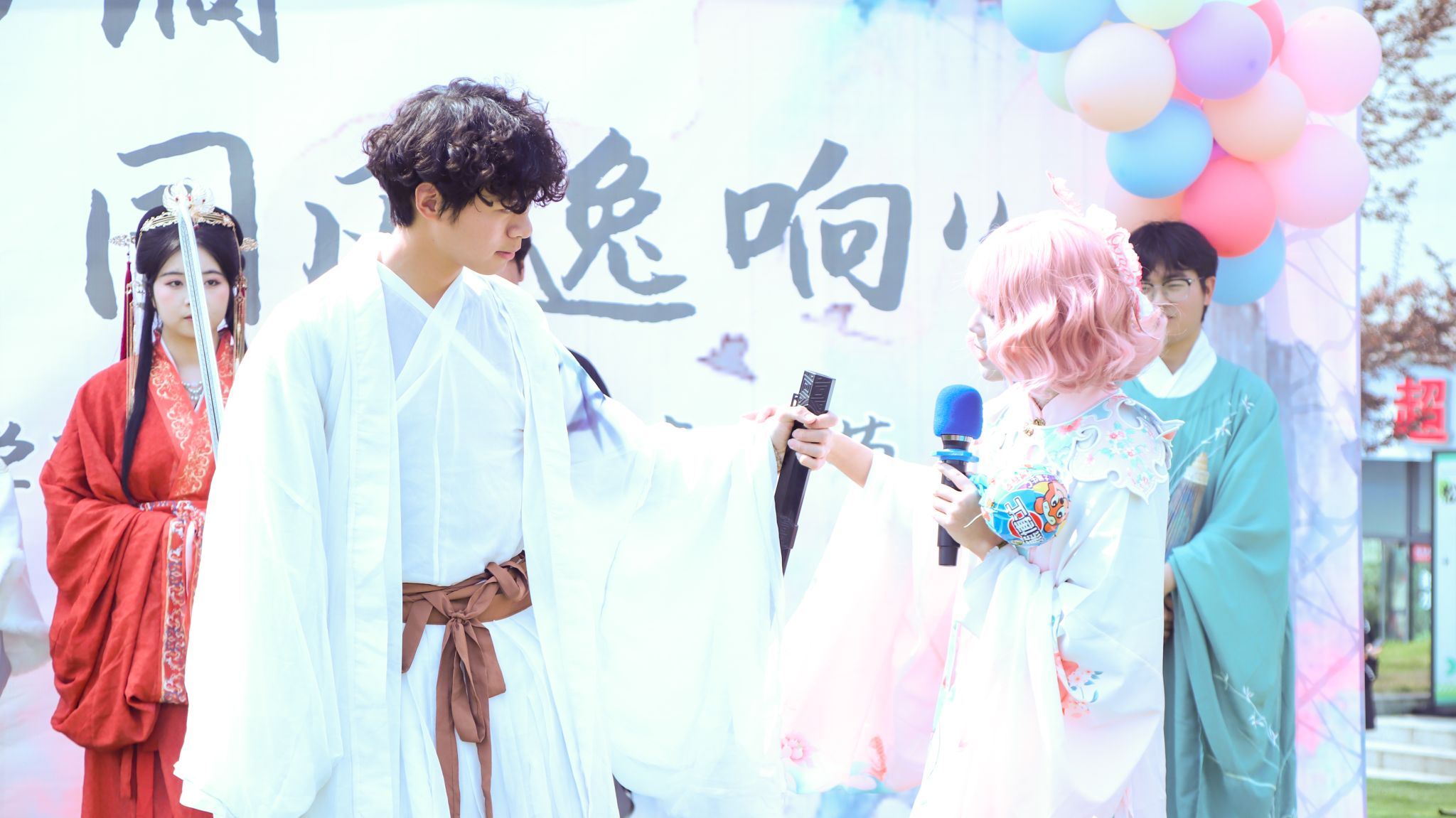 接着,在众人尚还对这场国风视觉盛宴目不暇接之时,音乐会已悄然进入下半场。下半场舞台更添互动趣味,既有学生自发登台献唱《几多愁》《向天再借五百年》等热门歌曲,亦有即兴发起的国风歌词接龙快闪。每当演唱间隙,主办方播放《发如雪》《半生雪》等经典旋律填补空白,同学们或放松聆听,或欢声交谈,将音乐节化作开放式文化雅集。